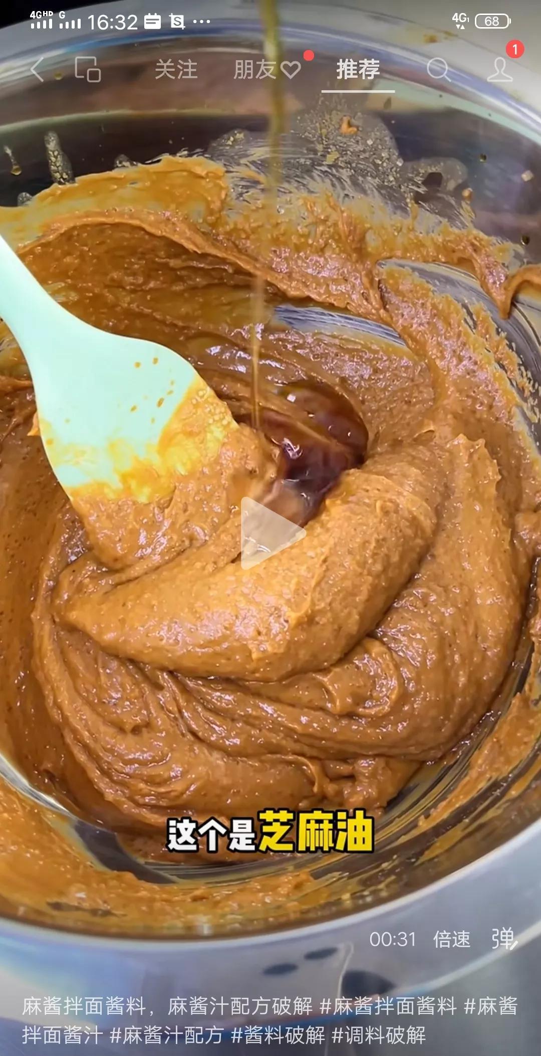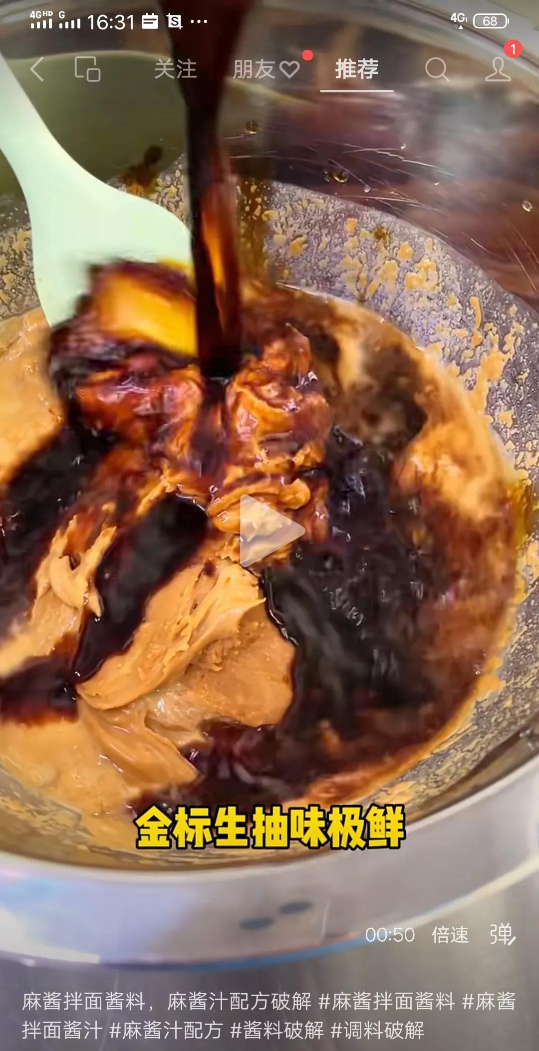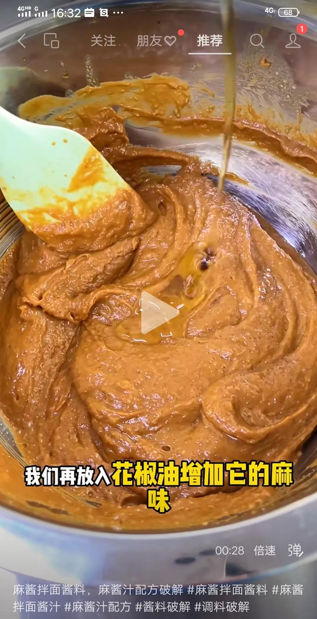 二八酱(20%芝麻酱、80%芝麻酱)+白醋+金标生抽味极鲜美极鲜+白砂糖+鸡粉+味精+芝麻油+花椒油+熬熟的大豆油,倒入料理机打碎,并搅拌均匀。