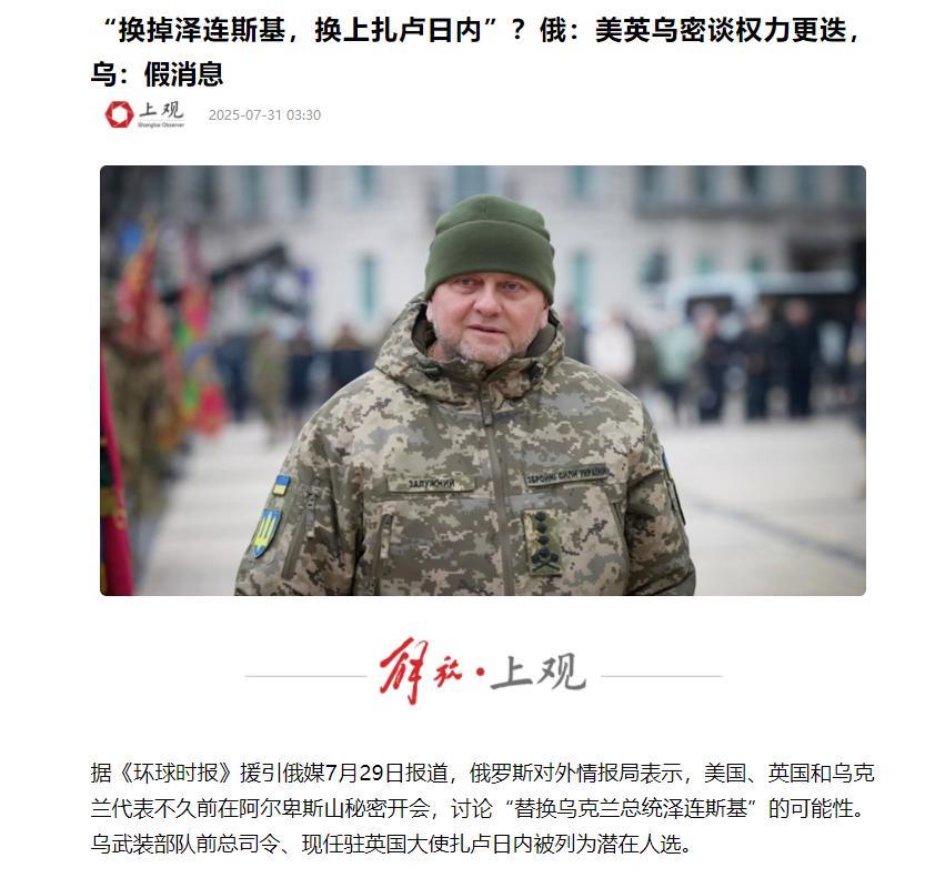 美英乌真敢在阿尔卑斯山密会换总统?泽连斯基刚硬撑着对抗俄军,就被盟友偷偷安排了 “接班人”?俄罗斯对外情报局突然爆出的猛料,像颗炸弹炸懵了所有人,他们说那几个国家的头头躲在度假村,竟商量让扎卢日内顶替泽连斯基。这消息透着诡异,却瞬间攥紧了全世界的目光。 说起来,俄罗斯现在日子不好过。想等着美英乌自己闹矛盾解决问题,基本没可能。 真要喘口气,要么给特朗普点好处,要么在战场上拿出真本事,没别的路。 这场较量接下来会咋样,谁也说不准,大家都在看。 这局面让俄罗斯挺头疼,毕竟之前想法不一样。 俄罗斯国内一直说,特朗普上台后只顾美国,不会管欧盟和乌克兰,俄军准赢。 可特朗普变得比翻书还快,一会儿说乌克兰,一会儿敲欧盟,转头又对付俄罗斯,谁都跟不上。 俄罗斯没辙,只能在国内传些消息,比如美英可能要换掉泽连斯基。 不过这消息有几分真,不好说。其实 “换掉泽连斯基” 更像特朗普手里的牌,啥时候打全看他。 欧盟乖乖交 “保护费”,这牌可能就不用;不听话,说不定啥时候又拿出来。 特朗普敢这么折腾,是有原因的。特朗普最近对俄罗斯不客气,是因为欧盟在关税谈判给了不少好处,北约军费也差不多达到他的要求。 拿了好处,总得摆摆和美欧一起对付俄罗斯的样子,这让俄罗斯挺没面子。 俄罗斯当然不能认,总得说句话。7 月 28 号,俄罗斯外长拉夫罗夫放狠话,说俄罗斯正一个人跟整个西方对着干,历史头一回。 以前打仗或冷战时都有盟友,现在孤零零的,绝不能软。 他还说冷战时美苏还互相尊重,现在俄欧没这回事,就算特朗普上台,欧洲对俄还是没好脸色。 这话明显说给特朗普听,意思是不是不想谈,是形势不允许,服软了欧洲会欺负人。 可拉夫罗夫刚说完,特朗普就来了硬的。俄罗斯没料到,拉夫罗夫话音刚落,特朗普就出硬招,加关税还运核弹,一点面子不给,好像说打谈都奉陪。 美国最近对俄压力越来越大,特朗普 29 号说,普京不停火,12 天内就加关税,连俄贸易伙伴都可能面临最高 100% 的税。 不光这,美国军机还大摇大摆开着应答机往英国运核弹,这是 2008 年后头回在英国放这东西。 美国这一连串动作,就是想用核威慑和关税逼俄罗斯低头。 面对这些,其他国家有啥反应呢?到现在美英没表态。 但乌克兰国防部情报总局反应快,说这是俄罗斯对外情报局局长让人编的瞎话。 乌克兰觉得,俄罗斯就是想搅乱乌社会秩序,让高层互相猜忌,转移大家对俄乌冲突的注意力。 毕竟这冲突是国际大事,一点动静都可能影响局势。 那俄罗斯对外情报局具体说了啥?7 月 29 号,俄罗斯对外情报局突然抛出个大新闻,说美国、英国和乌克兰的几个头头,在阿尔卑斯山的一个度假村里偷偷开了个会。 他们表示,美英代表明确说让扎卢日内上,乌克兰参会的几个人也都同意,还得到保证会保住职位,人事安排考虑他们利益。这事儿听着像演电影,真假没人说得准。 说到底,这一连串的事儿都绕不开俄乌冲突这个大背景。 俄罗斯日子不好过,特朗普那边反复无常,美英乌之间又传出各种真假难辨的消息,说到底都是各方在较劲。 泽连斯基的去留成了被拉扯的棋子,背后是大国之间的利益算计。 不管是俄罗斯放消息,还是美国出硬招,最终都得看各方在利益和实力上的博弈结果。 这场拉锯战到底会怎么走,还得接着看下去。