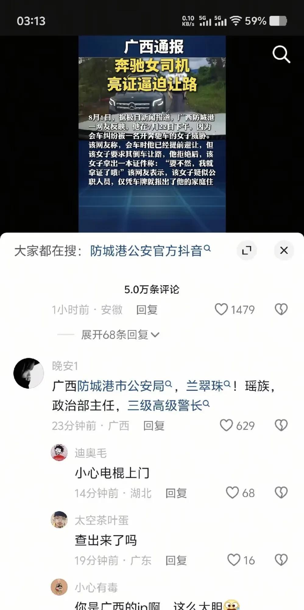 终于有网友扒出了亮证姐的身份,最担心的事还是发生了,如果爆料属实那吃瓜群众就可以散了,这事大概率等不到大家想看到的结果,如果要更高的部门处理,光靠一个支 队是查不清楚的。 光靠奔驰是给不了她的底气的,主要来源还是她的身份,听她说话的语气,给人一种看古装电视剧的感觉,电视里县太爷出行,街上群众就要自动退避三舍,不得挡了路,不然下场就惨了! 不过从此以后,我决定以后立即做2件事! 第一、马上装一个高清的行车记录仪,下次碰到有人亮证,及时把视频传到网上,防止被删除,有理都说不清。 第二、为了自己的人身安全,要在家里大门口要装上摄像头,防止有不明人士半夜来家里。 对此,你有什么看法呢!