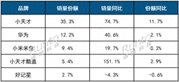 2025上半年中国儿童智能手表线上市场TOP5品牌销量表现 华为以12.2%的份额位居第二,华为儿童手表依托华为强大的科技实力,在通话、定位、健康监测等功能上表现出色。 小米米兔以9.4%的份额位列第三,小米向来以性价比优势著称,米兔儿童手表也不例外。 此外,小天才酷盖销量份额5.4%位居第四;好记星份额2.7%位居第五。 儿童智能手表市场竞争激烈,各品牌通过差异化竞争,在功能、价格、外观等方面不断创新优化,以满足家长和孩子的多样化需求。