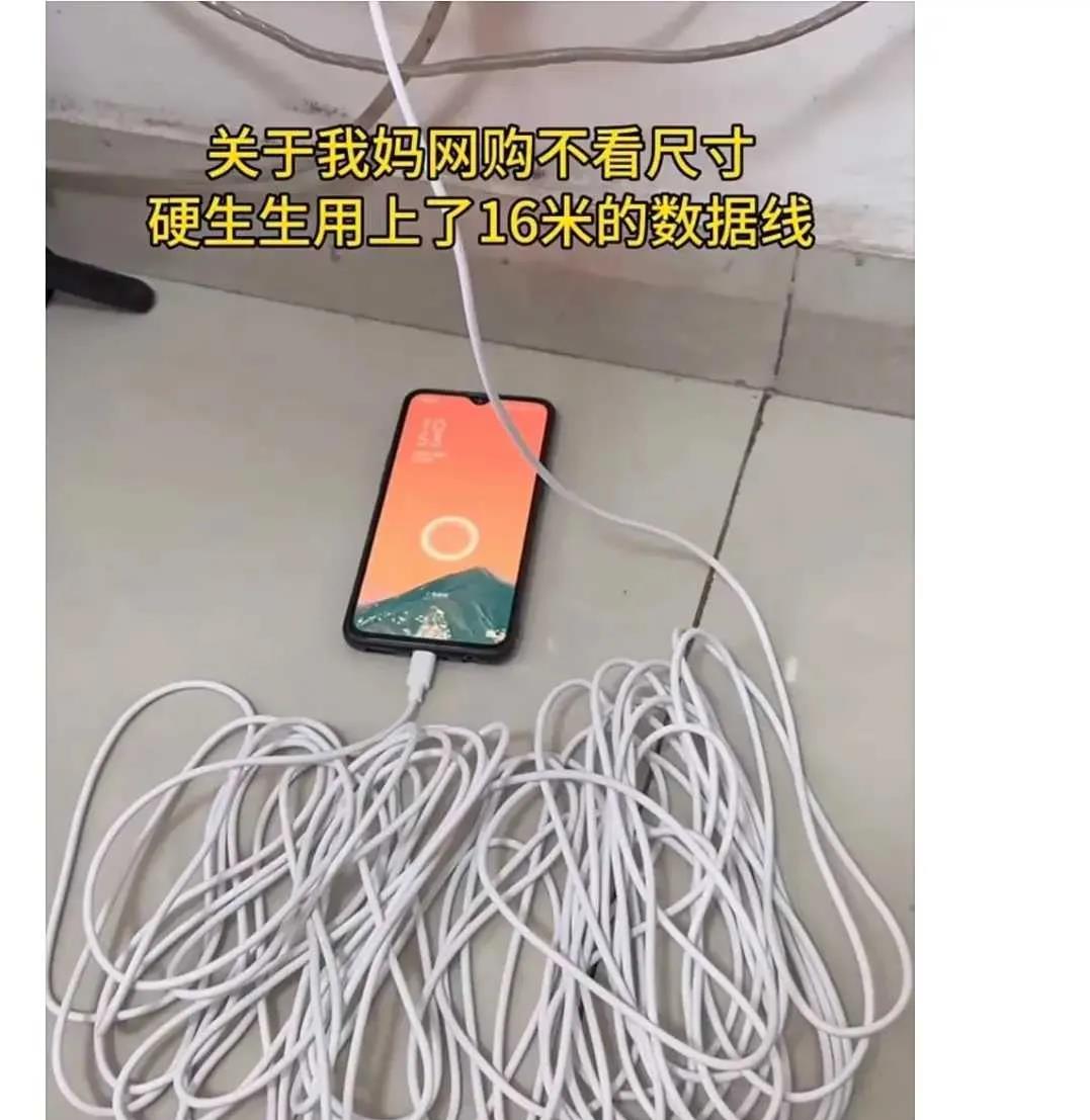 我浏览过那么多卖充电线的店家,咋就没见过还有十几米的充电线呢?问题是就算有这也不便宜啊。。这老人缺心眼还是咋的?