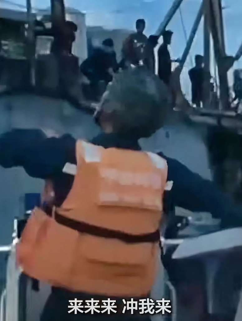 真帅!菲律宾非法船只闯入南海仁爱礁海域,面对菲方人员的持枪威胁,我国海警队员在对方的枪口下指着自己的胸脯对菲方人员高喊“来来来,冲我来”。