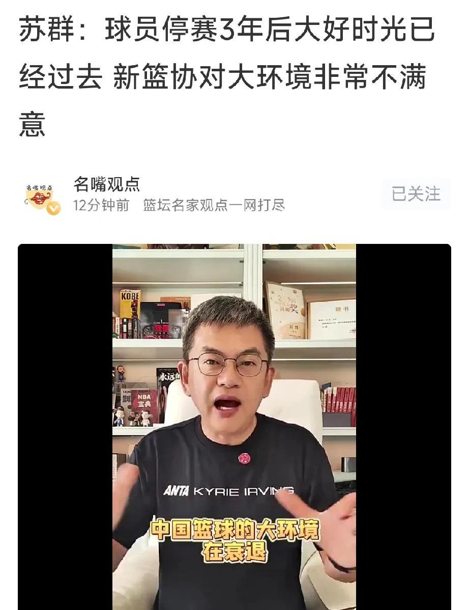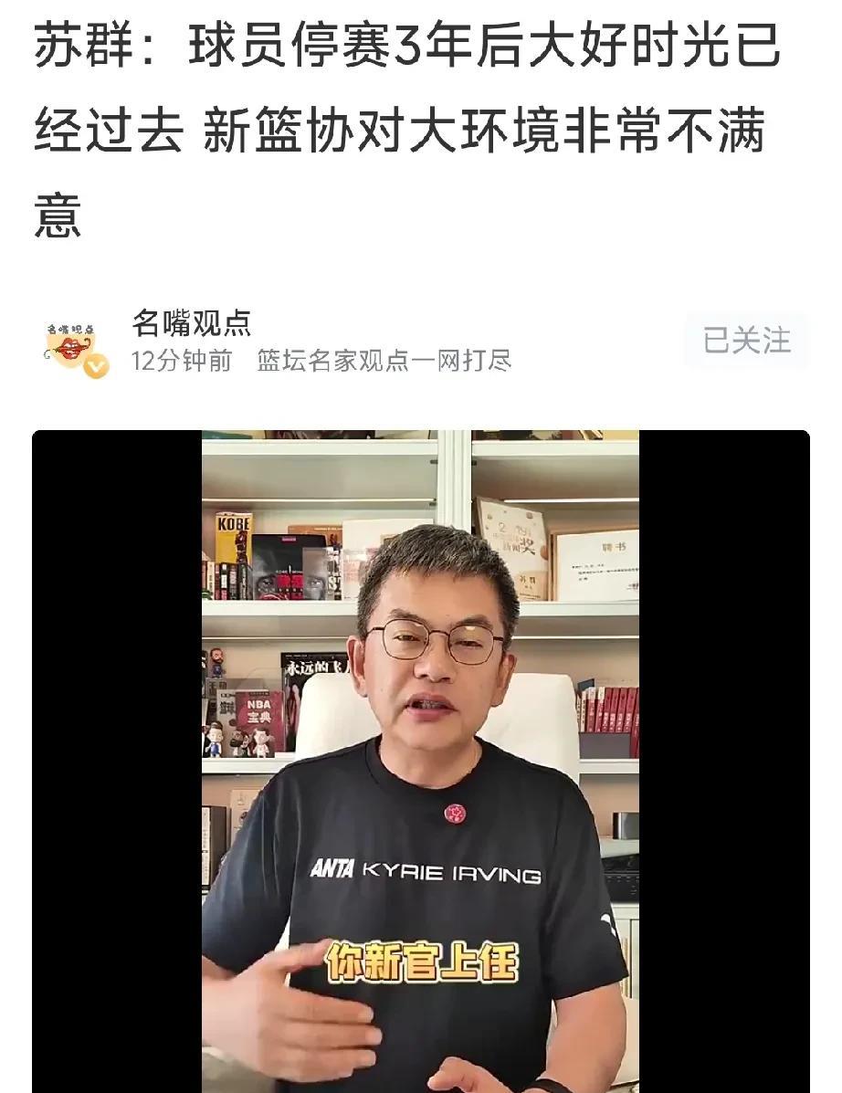 篮球名嘴苏群:新篮协对大环境非常不满意,重罚青年队球员三年!提到三点原因: 第一