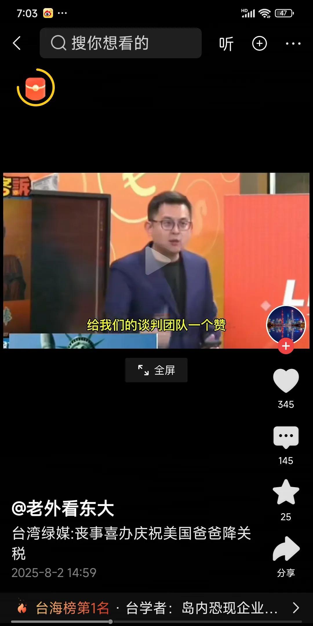 因为美国宣布对台湾的关税为20%,湾湾们竟然喜笑颜开,就是说,原来美爹要捅我32