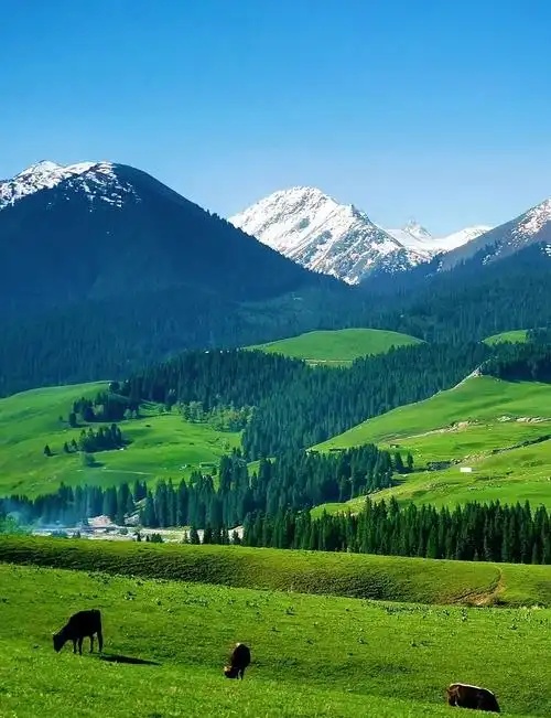 新疆伊犁 美景推荐: 1、赛里木湖,被称为“大西洋的最后一滴眼泪”,湖水、雪山美景。 2、那拉提草原,空中草原、河谷草原、盘龙古道等区域真的太美了! 3、喀拉峻草原:被誉为“世界最美立体草原”,犹如童话世界。 4、独库公路,一年通常6-10月通车。一天能体验四季。 还有果子沟大桥、夏塔旅游区、伊犁美食也是值得打卡的!