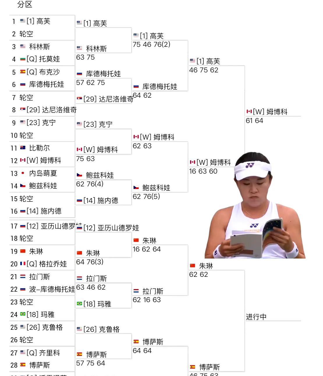 喜事来临,朱编剧能接住这天赐的幸福吗? WTA1000蒙特利尔赛,世界第二高芙1-6/4-6遭姆博科横扫无缘八强。 姆博科下一轮对阵朱琳与博萨斯之间的胜者。