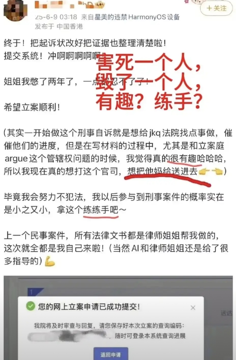 可即便这样,她还是要抓着肖明瑫不放,而且还公开放话:“不管他去哪上学或者工作,我都要去举报,誓要将他逼入绝境。”