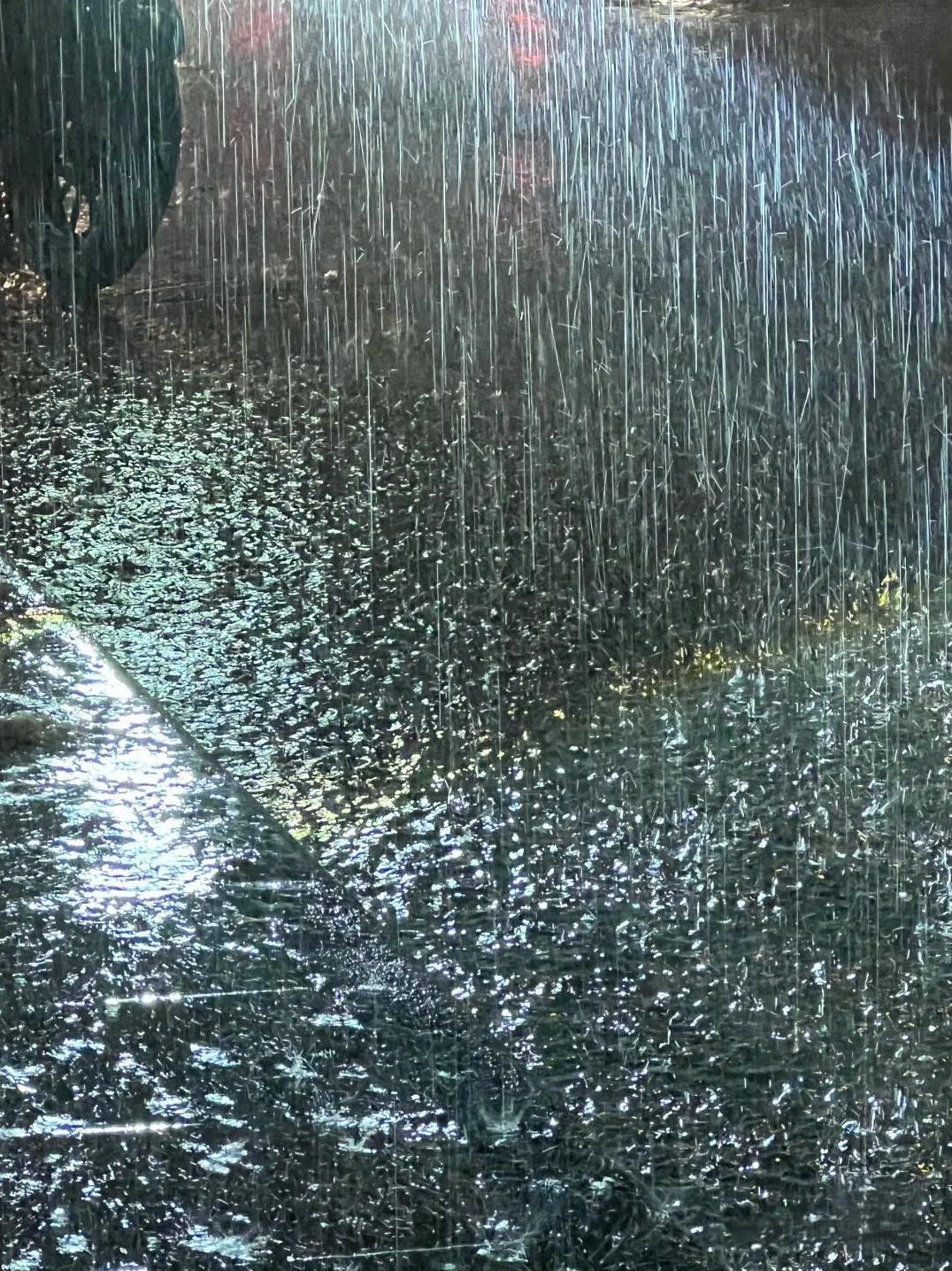 #怎么不提雨字描述雨很大# 《七律·暮天骤景》/马进鹏 暮云翻墨压层峦,风怒枝摇鸟尽叹。 白水倾盆街欲没,幽庭积潦映楼残 。 遥观远树迷苍色,近听洪声卷急湍。 俄顷乾坤浑若梦,檐前悬瀑挂惊澜 。 这首诗首联以“暮云翻墨”写出天色暗沉如墨,狂风摇动树枝,鸟儿惊飞叹息,营造出风雨欲来的压抑氛围。颔联“白水倾盆”虽未提及“雨”字,但形象描绘出雨水如盆泼下,街道几乎被淹没,庭院积水映照残楼的景象,突出雨势之大。颈联从视觉和听觉描写,远处树木在雨幕中模糊不清,近处能听到雨水汇聚成洪流的湍急声音。
