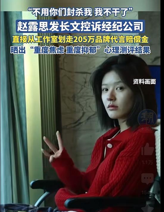 赵露思,真的是个谜! 现在到底是怎么回事? 想解约,感觉舍不得付出,是这个意思吗? 其实,怨不得别人,身体不好,想解约该赔钱就赔钱就完事了?205万赔偿也不是一个很大的数目吧?