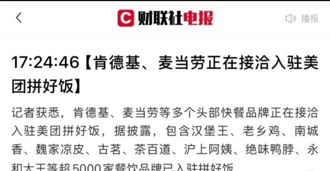 肯德基、麦当劳正在接洽入驻拼好饭! 哈哈哈!这下子可是全部联动了,无论几时孙颖莎
