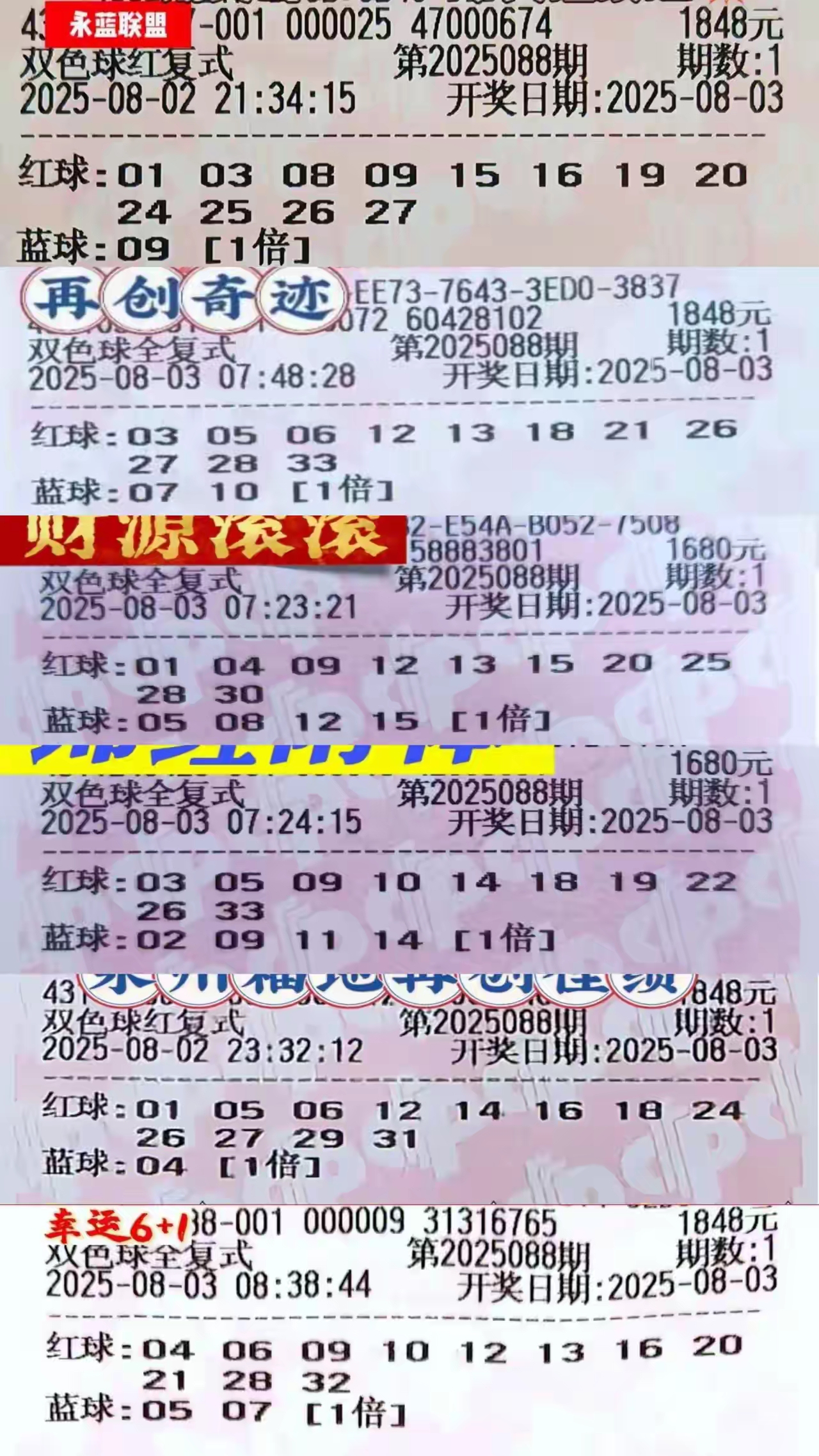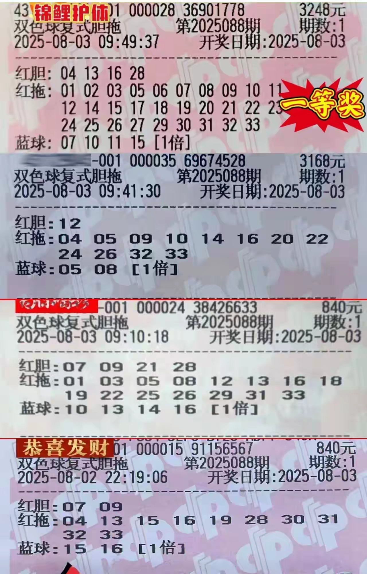 双色球25088期晒票,单注99倍和万元复式票汇总,八月好运不断