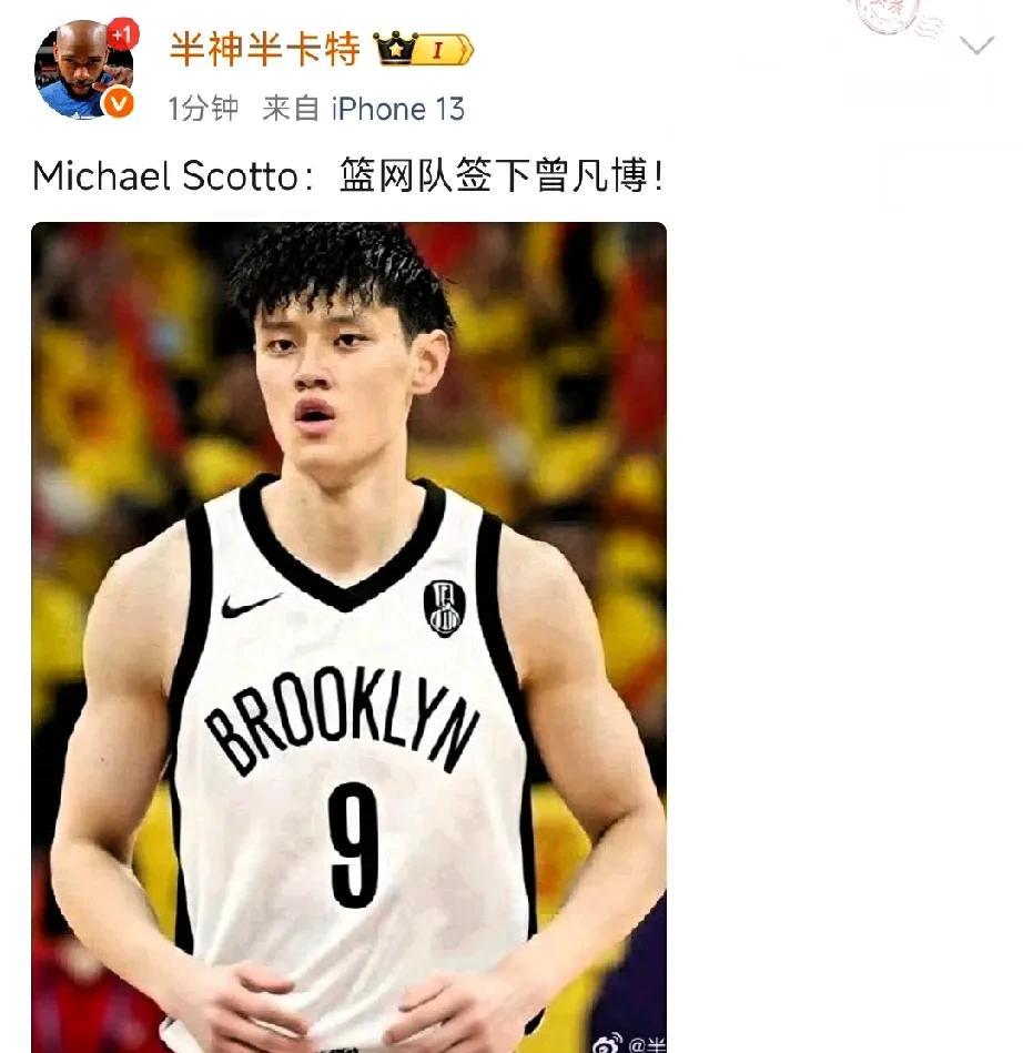 中国男篮出现第3位nba现役球员,据多位媒体人透露:篮网签下曾凡博,男篮第三位n