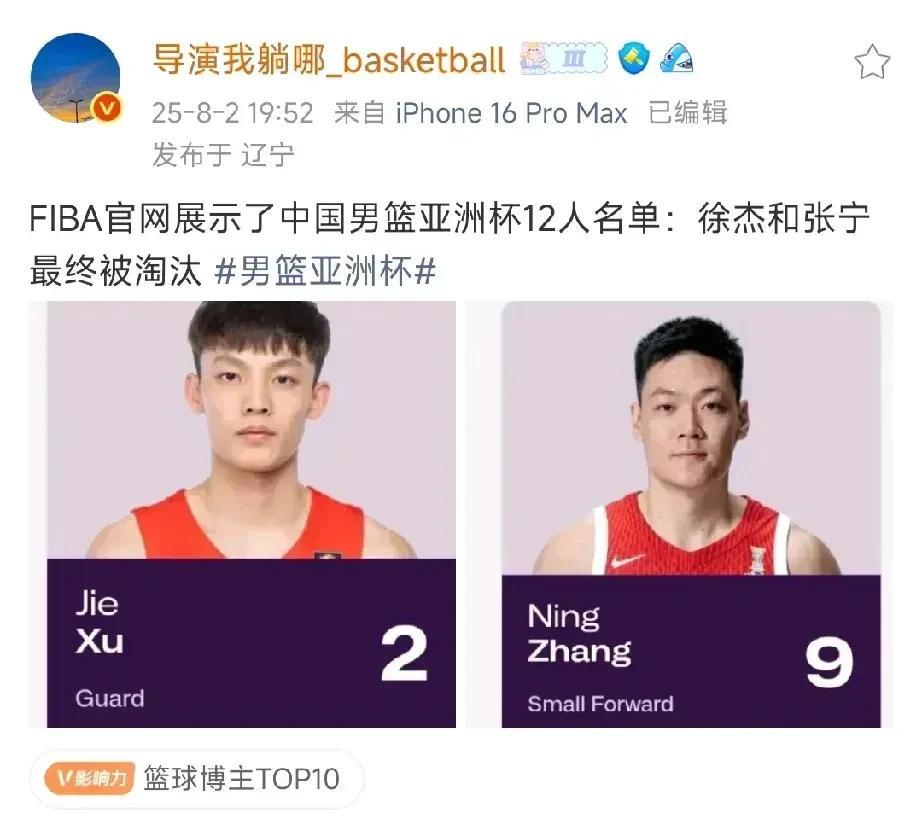 我真为郭士强提心吊胆!亚洲杯官网显示:徐杰和张宁没在中国男篮12人名单里,意味着