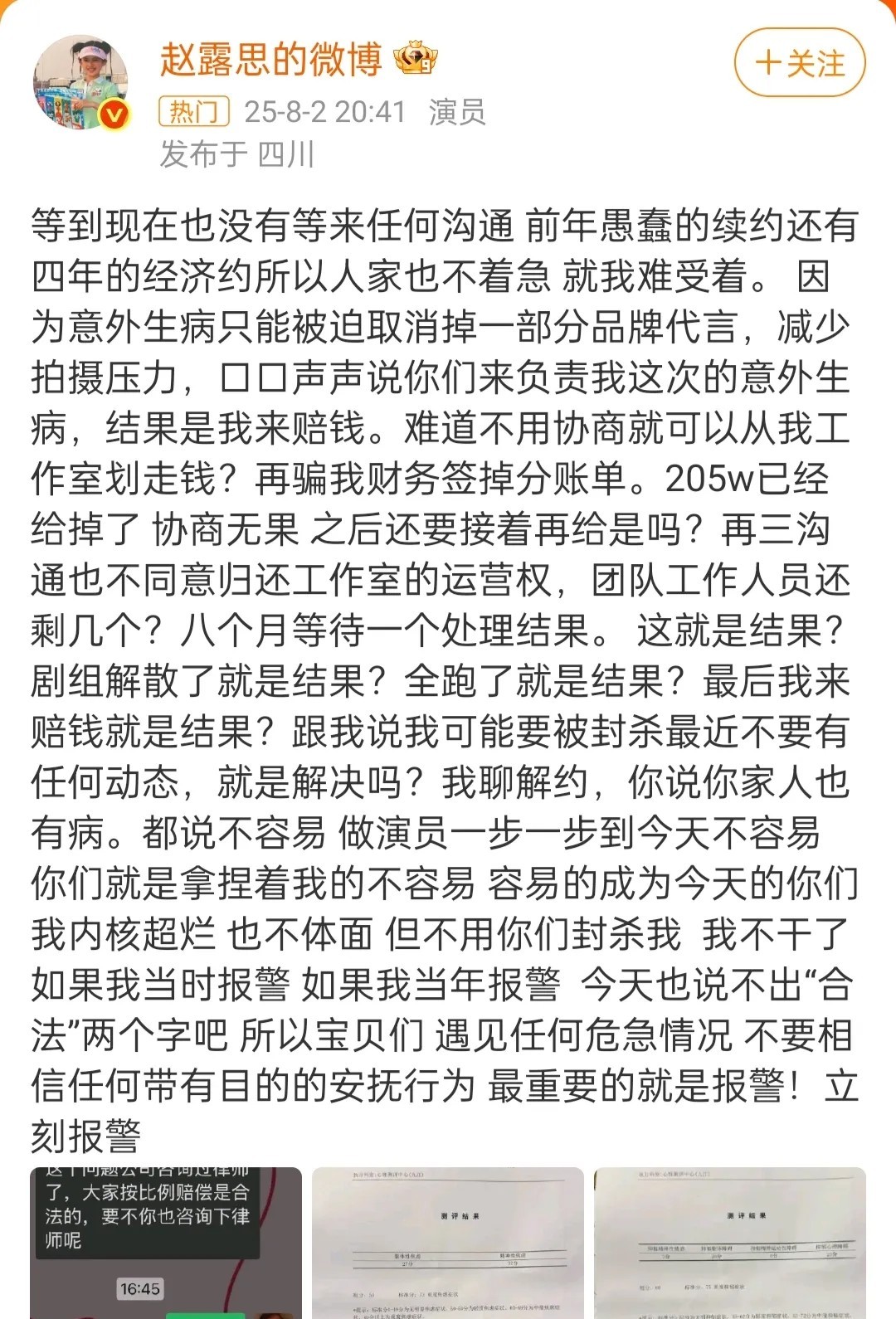 赵露思这事儿实在太古怪了,你想想啊,她放着专业公关团队不用,偏偏自己亲自写了这么长一段话,还都带着气。 按理说明星遇到这种糟心的事情,都应该是公关连夜写好稿子,并且一个字一个字的研究,把话说得滴水不漏吗? 可她倒好,亲自发文,直接把一肚子委屈全部说出来,也不管什么合不合适,连“报警”“封杀”这种话都没藏着。 真是让人好奇,是团队靠不住吗?还是这里面的事情牵扯太多,公关根本不敢写?又或者,她就是故意不让公关写,非得自己把实话说出来? 赵露思这个做法真是越想越让人好奇,她到底是被逼到什么份上了,才宁愿自己亲自动手啊?你们觉得是为啥?
