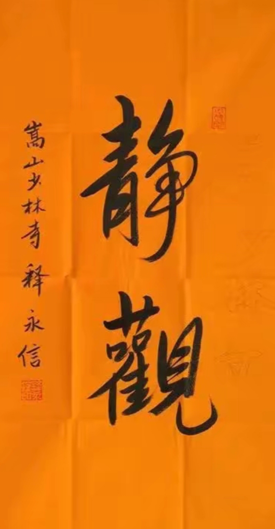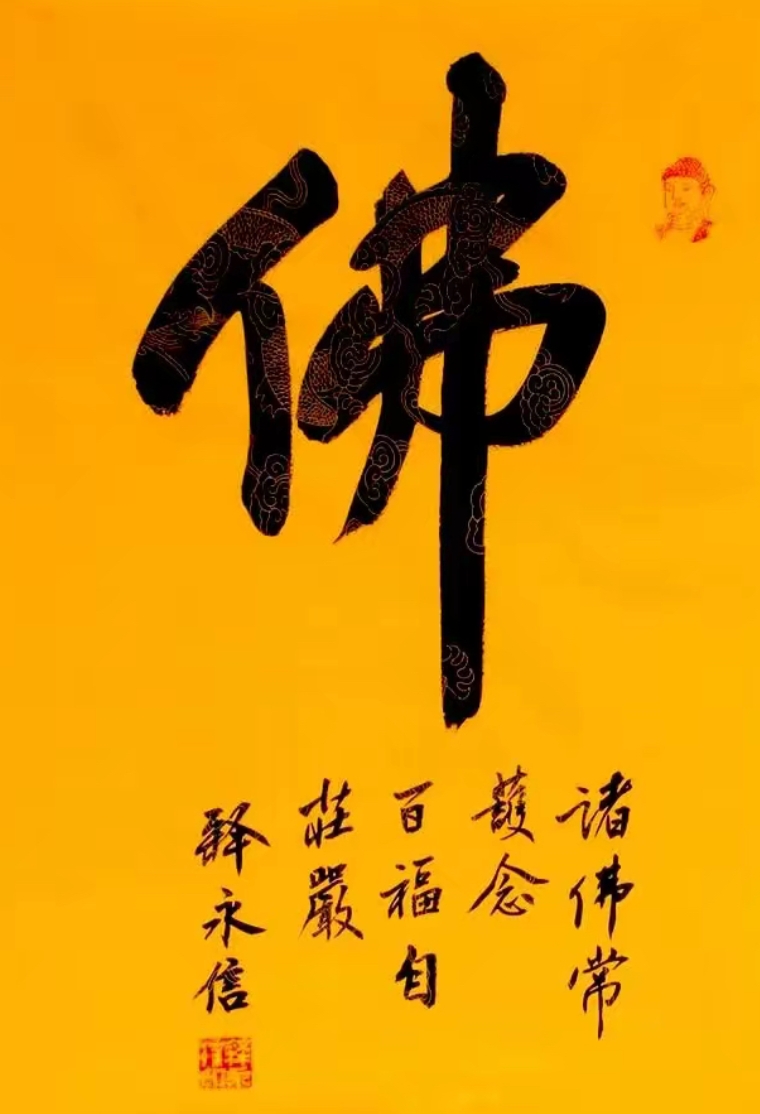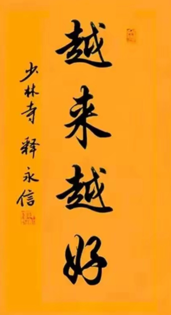 释永信不做书法家的是太可惜了,瞧瞧,看一下他的这些字,写得非常大气,霸气潇洒,无论是远看还是近看,都非常的漂亮,可见他的字是有一定的功底,字体有个性。
