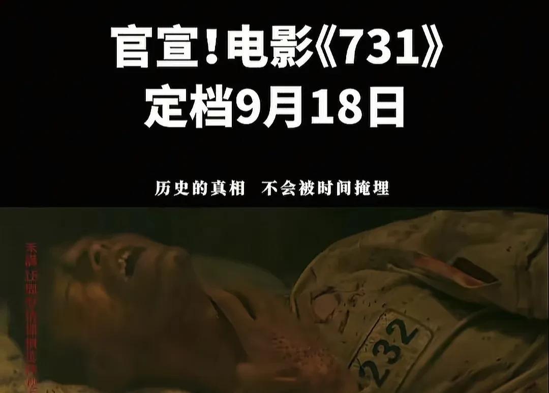 人民日报官宣,电影《731》终于定档了,9月18号上映,铭记历史,勿忘国耻。 不