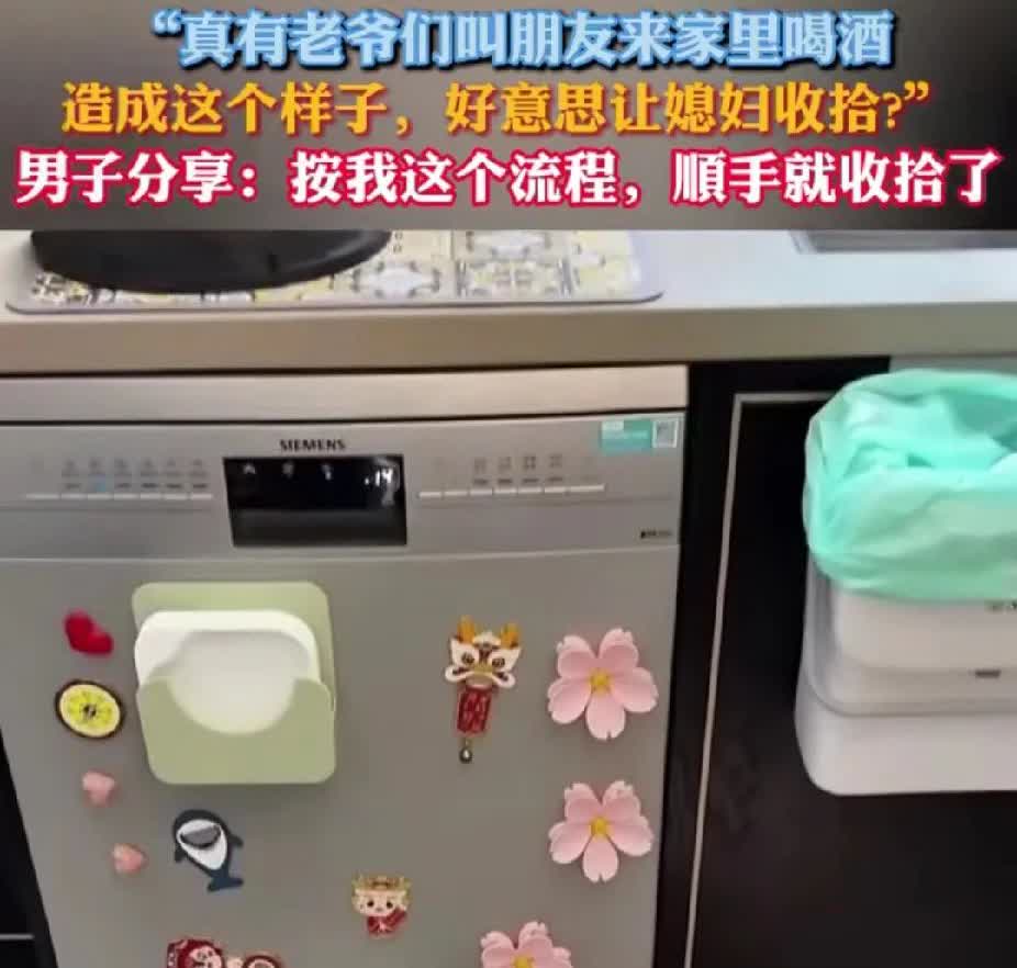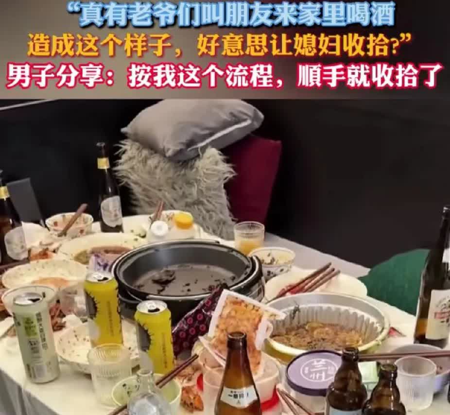 辽宁,男子说:“叫朋友来家里喝酒,好意思让老婆收拾?按我这个流程,顺手就收拾了