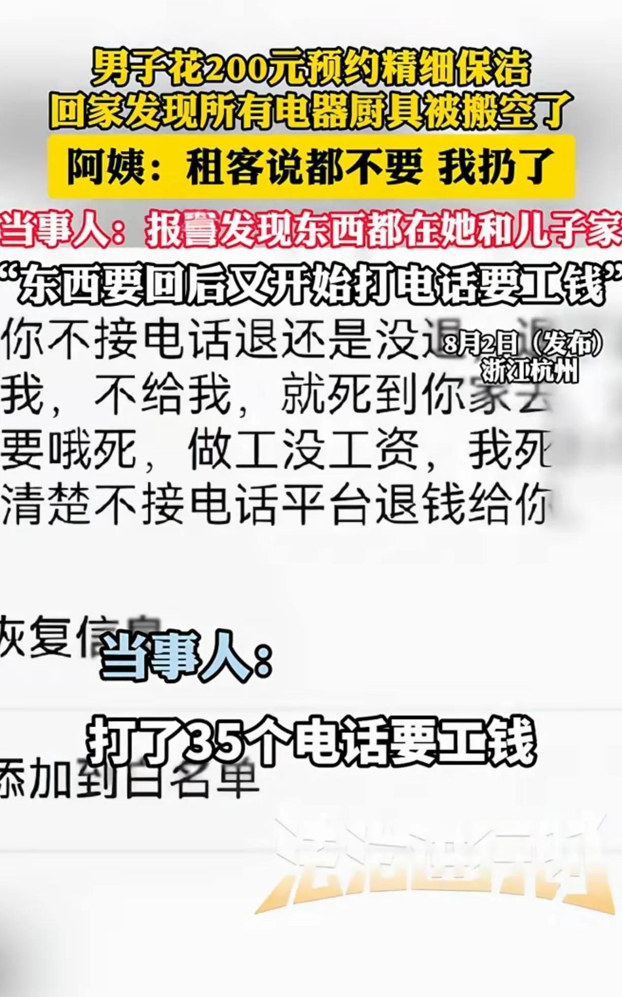 “保洁变洗劫!”浙江杭州,一男子花200元,请一保洁上门做4小时的精细保洁,他下