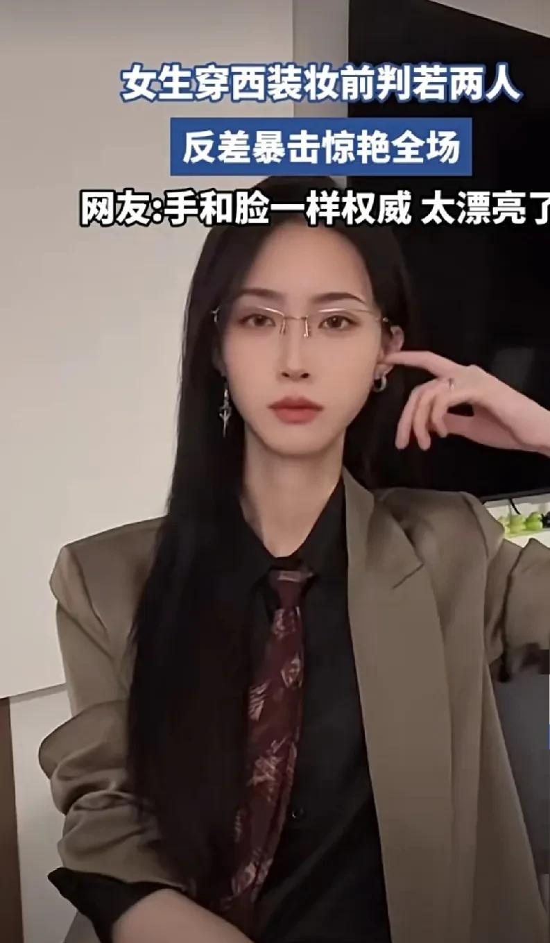 女生穿西装妆前判若两人,反差暴击惊艳全场,这才是西装杀[比心]