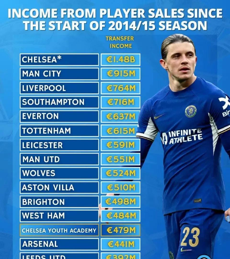 转会市场盘点! ★距离9月1日夏季转会窗口关闭还有28天! ★今夏迄今为止最佳签约TOP10! 皇马签下怀森的交易,竟然超过了利物浦签入维尔茨,另外拉什福德转会巴萨排在第四,丁丁和魔笛两位传奇中场也都进入前十当中。 ★今夏转会市场到处碰壁的纽卡! ★滕嗨又要重新补货了! 勒沃库森快散伙了! ★22/23赛季,当时阿贾克斯同时拥有廷贝尔、孔塞桑、库杜斯、卢卡,而现在他们分别效力于阿森纳、尤文、热刺、那不勒斯。 ★自14/15赛季以来,各俱乐部通过球员销售获得的收入排名。 切尔西买的多,但是卖的也多。 ★英超联赛中转会费最高的前锋球员。 枪手新援哲凯赖什排在第8位。 ★足坛历史引援花销最多的俱乐部! 切尔西以41.8亿欧元断层居首,天生富贵命。