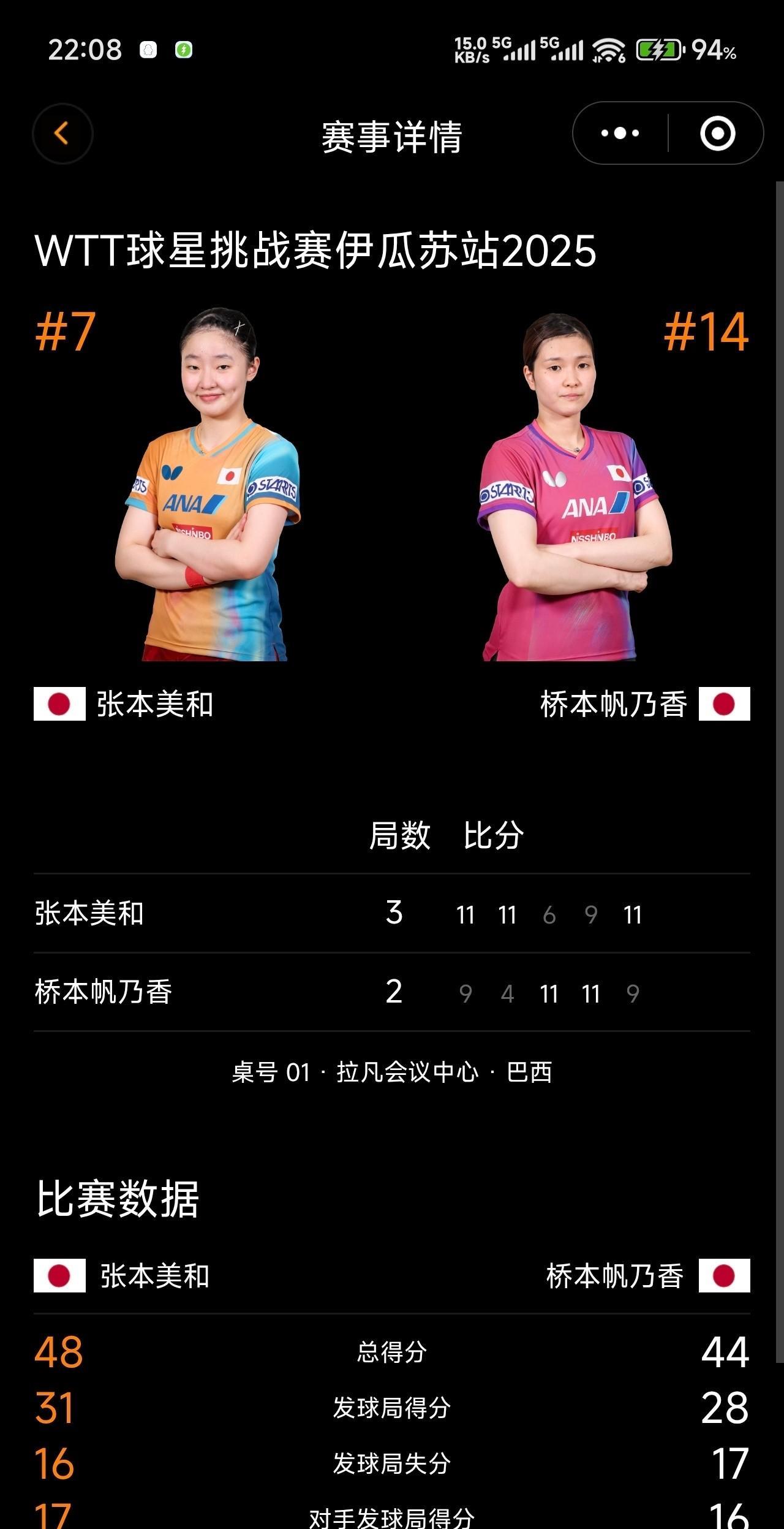 张本美和耗时一个小时,齐刘海都被削成条形码了,超绝意志力,勉强掰倒桥本帆乃香,挺进伊瓜苏站球挑决赛。打桥本,不死也要脱层皮。 刚刚结束的球星挑战赛伊瓜苏站半决赛,观众和张本美和都要累死了,拖到决胜局,张本美和真的凭借一股“我势要稳坐一姐,上洛杉矶奥运单打”的决心,在生扛,决胜局 8:6的时候才开始数板数,比赛已严重超时。 美和打桥本,基本都要拖到数板数,其他没到这个环节,因为会输很快。 打顶级削球手的最大问题是,桥本不累,但对手很累。 与她打消耗巨大,又要算落点,又要看旋转,又要防她正手突然攻,又要防她反手突然弹,张本美和存活到了最后,又向600积分靠近了一点。 而桥本帆乃香,这次女单闯入四强,混双夺金机会很大,已经进决赛了。 好了,享受你的首次冠军赛之旅吧。 横滨冠军赛,倒数第四天人物海报:桥本帆乃香。 #头号创作者激励计划#