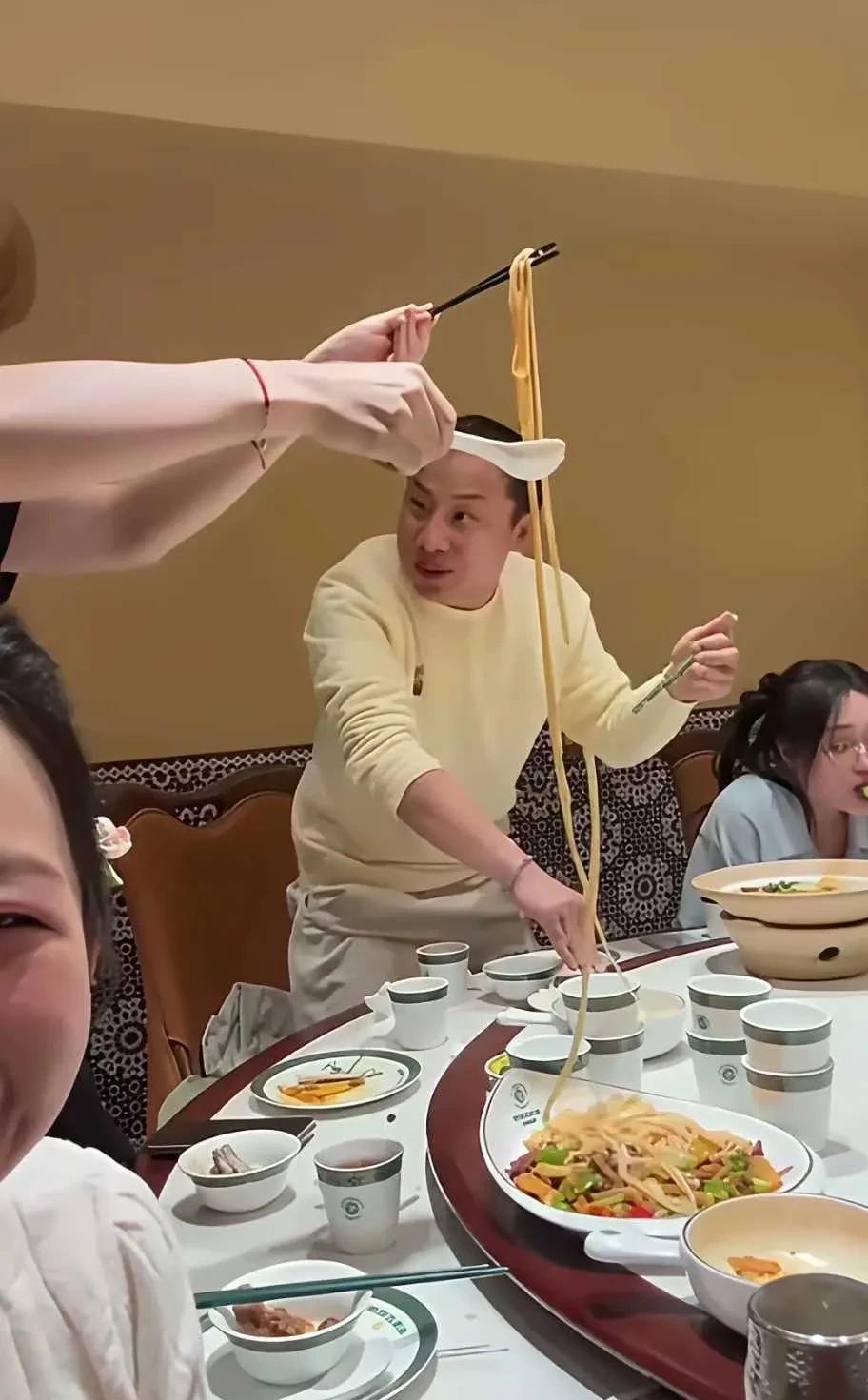 汪苏泷吃粉条,只有东北孩子知道的乐趣,粉条特长,要踩梯子吃,真想不到大饭店做粉条