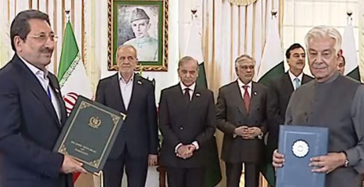 伊朗总统赞巴基斯坦在美以打击中“令人振奋”的支持,而巴基斯坦支持伊朗为和平目的获得核能的权利。 巴基斯坦和伊朗两国,3日签署了12项协议和谅解备忘录,内容涉及植物保护、联合使用米尔贾韦-塔夫坦边境大门、铁路、信息技术、气候和气象、海上安全、司法协助和旅游等领域的合作,两国领导人见证了签字仪式。 此前一天,伊朗总统马苏德·佩泽什基安率领一个高级代表团抵达历史悠久的旁遮普省首府拉合尔,开启他对巴基斯坦进行为期两天正式访问的第一站。 伊斯兰堡和德黑兰拥有900公里长的共同边境线,之前双方因边境问题龌龊不断,但随着这些协议的签定,意味着两国将形成更加紧密的联系。