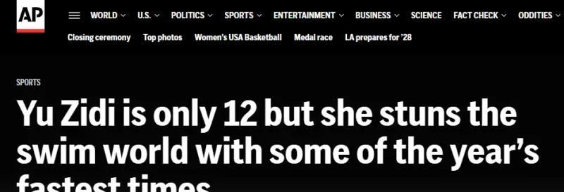 12岁的于子迪简直太牛了,直接登上ESPN封面,让美国3大媒体都叹服! 在2025年全国游泳冠军赛女子200米蝶泳决赛,她以2分06秒83夺冠,创造个人最佳。这成绩要是放在巴黎奥运会决赛,能排第四。美国游泳权威媒体指出,她已是史上最快的12岁孩子,不管男女。她8岁开始系统训练,10岁零5个月闯入全国成年组十强,2024年不满12岁就包揽多项冠军。如今她在世锦赛也表现出色,未来可期,绝对是中国游泳界的一颗超新星!