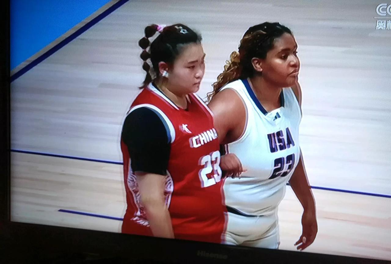 她俩是世界女篮大运会上的两位重量级人物。也是中美夺冠之战上的两位最亮眼的女篮23号球员。别看这两位大号中锋在比赛场上,相互之间总是虎视眈眈,谁也不服谁。但她们之间有一个共同的特点。那就是不仅人高马大,还长得胖。但打起球来绝对不含糊。有外线远投三分,也有下底上篮的内线突破。他们俩分别是,穿23号红色运动服的是中国大学生女篮运动员,刘禹彤。而穿23号白色运动服的是美国队女篮运动员贾达马龙。 虽然,两人的吨位相同,身高不相上下。但论对抗和爆发力,还是咱们的大宝贝刘禹彤要略胜一筹。她们俩跟普通运动员一样灵活机动,跟张子宇完全不是一个类型。只能站桩篮下投篮,稍微离篮框远一点就投不进。她俩是全能型,拆挡掩护,溜底上篮。内线两分,外线三分。行如流水。 看到这里知道了吧,美国女篮里也有刘禹彤一样吨位级别的大块头中锋。中国女篮主教练宫鲁鸣就是不要刘禹彤进国家队,是何道理。有人会说,贾达马龙只是美国大学生运动员。可别小瞧了美国大学生球员。美国大学生联赛比中国的WCBC联赛厉害多了。中国男篮参加沙特亚洲杯的王俊杰就是在美国打大学生联赛的,国家队可把他视为珍宝。大家说,为什么美国队就敢用超吨位的球员,而中国女篮就不敢用刘禹彤呢。