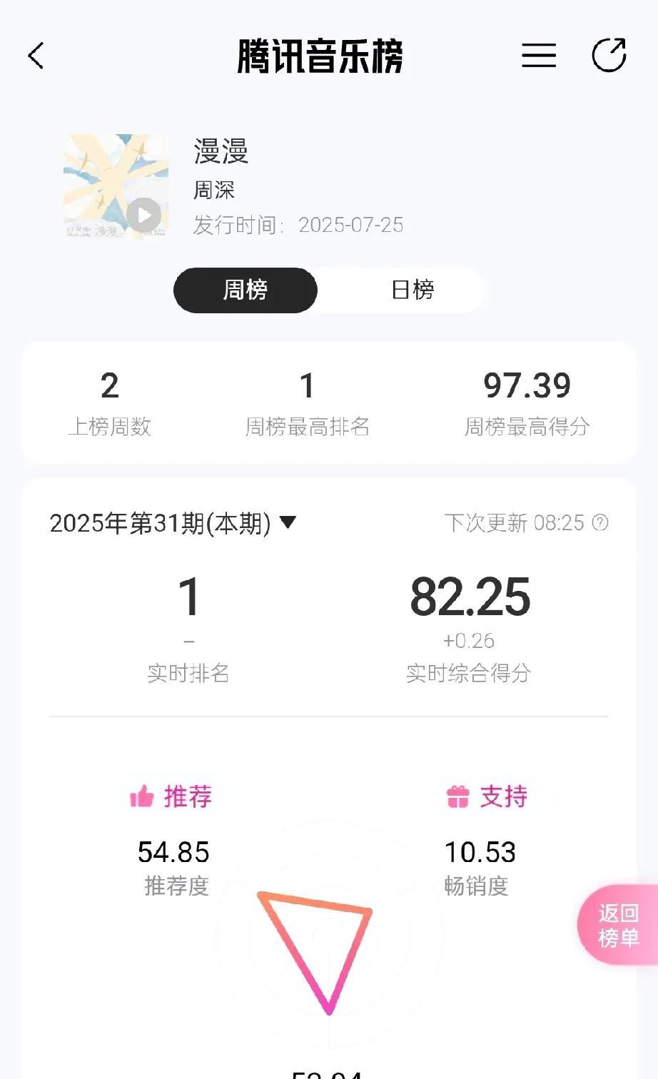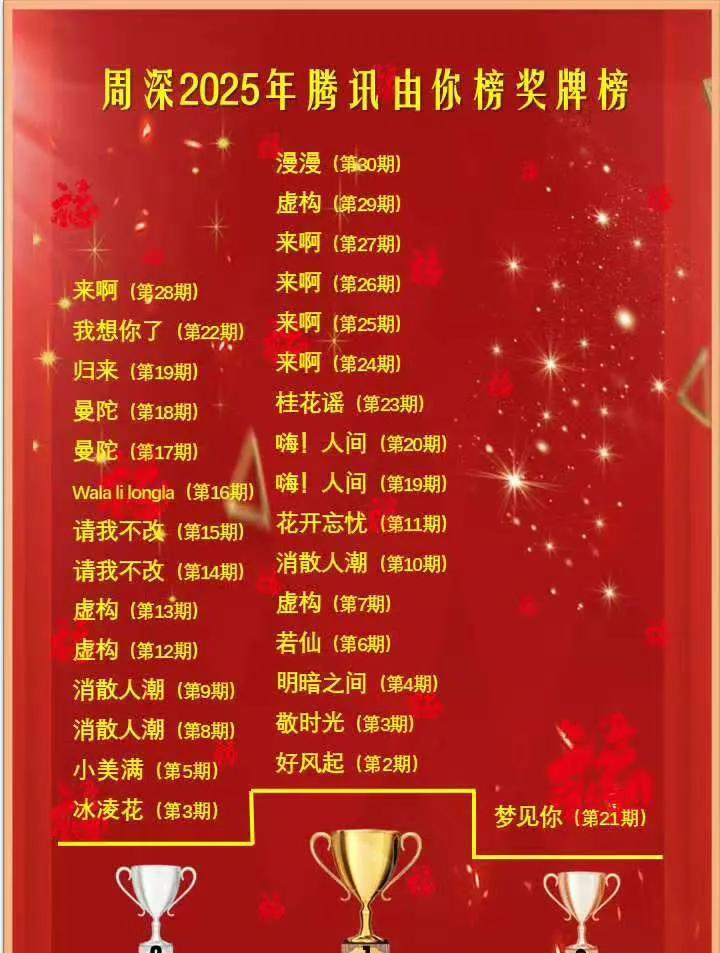 祝贺周深EP《小深情》的《漫漫》获得2025年第30期由你榜冠军![大金牙] 规