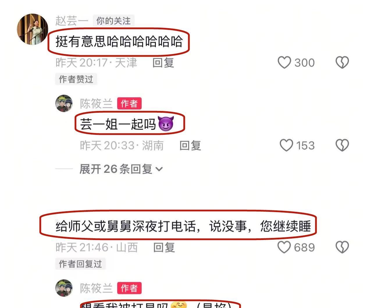 网友想看陈筱兰叫舅舅岳云鹏和师父孟鹤堂起床。对于网友的心愿,陈筱兰表示:不敢啊。不敢归不敢,但态度还是要有的。陈筱兰决定拿七队的师叔们练手,于是郭霄汉等人就遭殃了。看到郭霄汉赖床不起,有网友调侃,当年小龙叫郭霄汉吃早餐,就没有成功过,到了你这,也不会例外。通过各种诱惑,陈筱兰算是成功喊党霄咏起床。既然不敢叫舅舅和师父起床,有网友又建议了,希望陈筱兰夜里给他们打电话。而赵芸一看到陈筱兰如此有趣,觉得挺有意思。陈筱兰则回应:芸一姐,一起吗? #网友让陈筱兰喊舅舅师父起床#