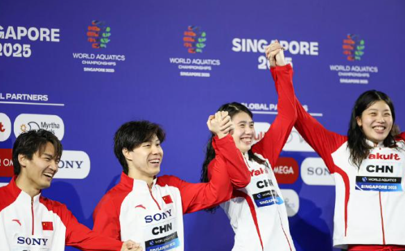 张雨霏晒多合影总结新加坡世锦赛 张雨霏晒各种合影总结世锦赛,有和覃海洋,徐嘉余,吴卿风的男女混合接力铜牌,也有女子混合泳获得铜牌和观众席队友们的互动。是超级有团魂的中国游泳队,是受伤状态未恢复依然是接力中流砥柱的张雨霏。在接力中游出比自己的单项还要快的成绩。 希望霏霏可以一直享受游泳带来的快乐,一直前进游出更好的成绩。