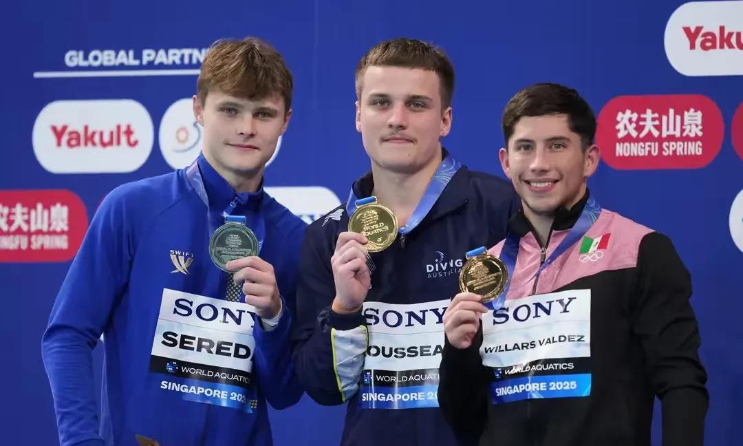 新加坡游泳世锦赛昨天进行了跳水项目最后一项男子单人10米台决赛,半决赛排名前两位晋级决赛的23岁的朱子锋和14岁小将赵仁杰联手向金牌发起冲击。前三轮后,朱子锋发挥稳定暂列第一,但第四跳207B发挥不佳,仅得到61.20分,排名跌至第四,曾夺得2023年福冈世锦赛该项目冠军的鲁索趁机反超朱子锋,并将领先优势不断扩大,最终收获金牌,乌克兰选手谢列达和墨西哥选手巴尔德斯分获二三名,朱子锋仅获得第四,预赛排名第一的小将赵仁杰也在第四跳出现失误,最终获得第五名。这是中国跳水队在本届比赛丢失的第五金,也是奥运项目第二金,男子两个奥运单人项目全部无缘金牌,三米板获得银牌和铜牌,仅非奥项目单人一米板由四次出战世锦赛的郑九源拿到金牌。