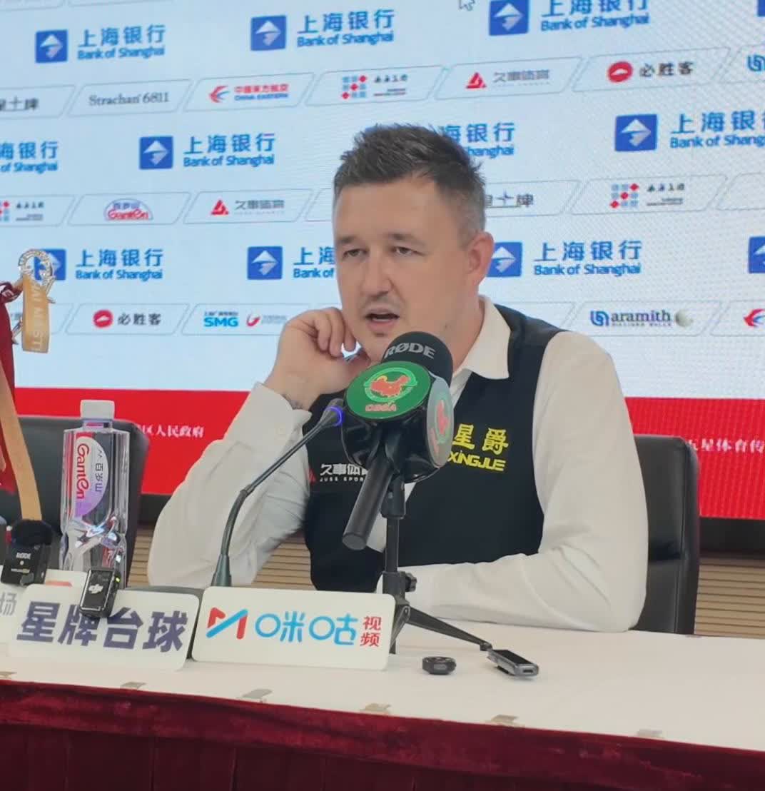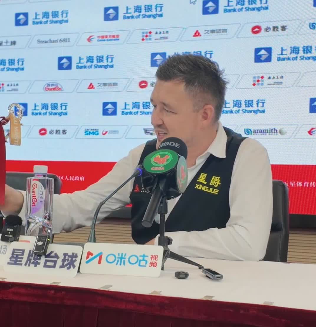 这是一个不可思议的决赛,时时刻刻都有变化和转折。阿里展示了一位冠军该有的精神,这一整天他都给我制造了很多困难,但对我来说也是一件好事。我们设法为中国球迷带来精彩的比赛,因为他们如此热爱斯诺克,他们如此热爱上海大师赛,所以我真的非常开心,最终我尽最大努力赢下了比赛。 与十年前夺冠区别:每一场胜利都是特别的,我能感觉到想要获胜越来越困难了,尤其是面对中国年轻天才选手,获得胜利真的非常困难。无论是对于我自己还是其他顶尖球员,但是十年前上海完全改变了我的生活。我当时世界排名大概50左右,不知道我的职业生涯何去何从。 当我2015年拿到第一个冠军的时候,我的生涯就起飞了。上海永远是非常特别的地方,在我心里总是有一席之地。一年又一年,我非常喜欢回到这里,所以赢下这个冠军也很特别。 与上海的渊源:我认为这是一个很好的问题,我知道这里的球迷喜欢欣赏精彩的斯诺克球局,他们欣赏冠军。最近我拿到了很多冠军,尤其是去年成为世界冠军,所以我认为球迷喜欢看到冠军。我也在改变我的球风,我尝试让球风变得更有侵略性,为球迷打出精彩的斯诺克比赛。 我也想去娱乐大家,我也想赢,非常开心知道我有一个昵称叫做"囧哥",我也知道现在怎么写这个字,我可能也会把它纹在身上,我会纹个纹身。 ·to draw the character so i think i'm gonna get a tattoo yeah i'll do a tattoo yeah。