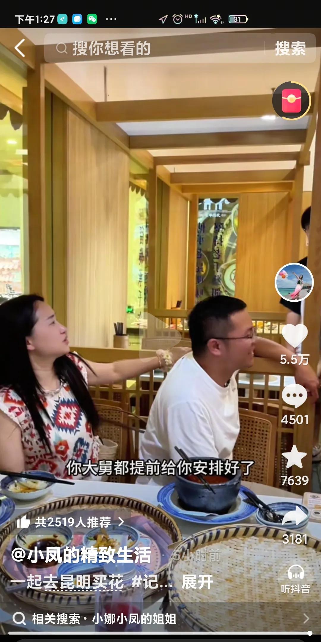 能跟金哥做亲戚还真是好福气呀[捂脸] 金哥确实不简单,能带动亲朋一起发财,徐莉要开学了,小凤让她好好学习,金哥说没考上大学一样有工作干的,可以给她安排个事情做,小凤也说金哥都提前给她安排好了,有这样的舅舅还真是有福气呀,三生有幸[捂脸] 金哥确实厉害,这次云南之旅不光他和小凤的账号流量大,这些跟着他的亲朋账号流量都大起来了?确实很厉害,带动性极强,这火车头杠杠哒[赞]