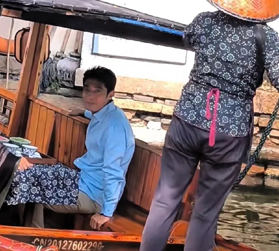 有网友在周庄偶遇撒贝宁,他应该是在录制节目!他在渔船上录节目,有人和他打招呼,他