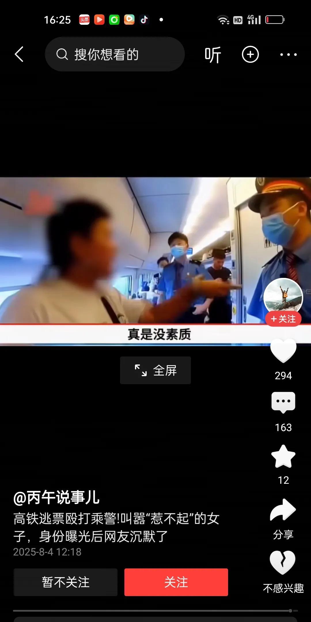 白衣女子逃票被乘务员要求补票。女子可能觉得没有面子,往过道上跑去。当乘务员拿出刷卡机要她补票时,女子语出惊人,用你的前途生涯跟我说话,你信不信我分分钟让你葬送自己的职业生涯。还别说,乘务员刚开始还真有点被她唬住了,以为她真是一个什么大人物了。后来仔细一想,大人物不会不买票,这就是扮猪吃虎。果然女子就是唬人,为了面子才说出那样的话。