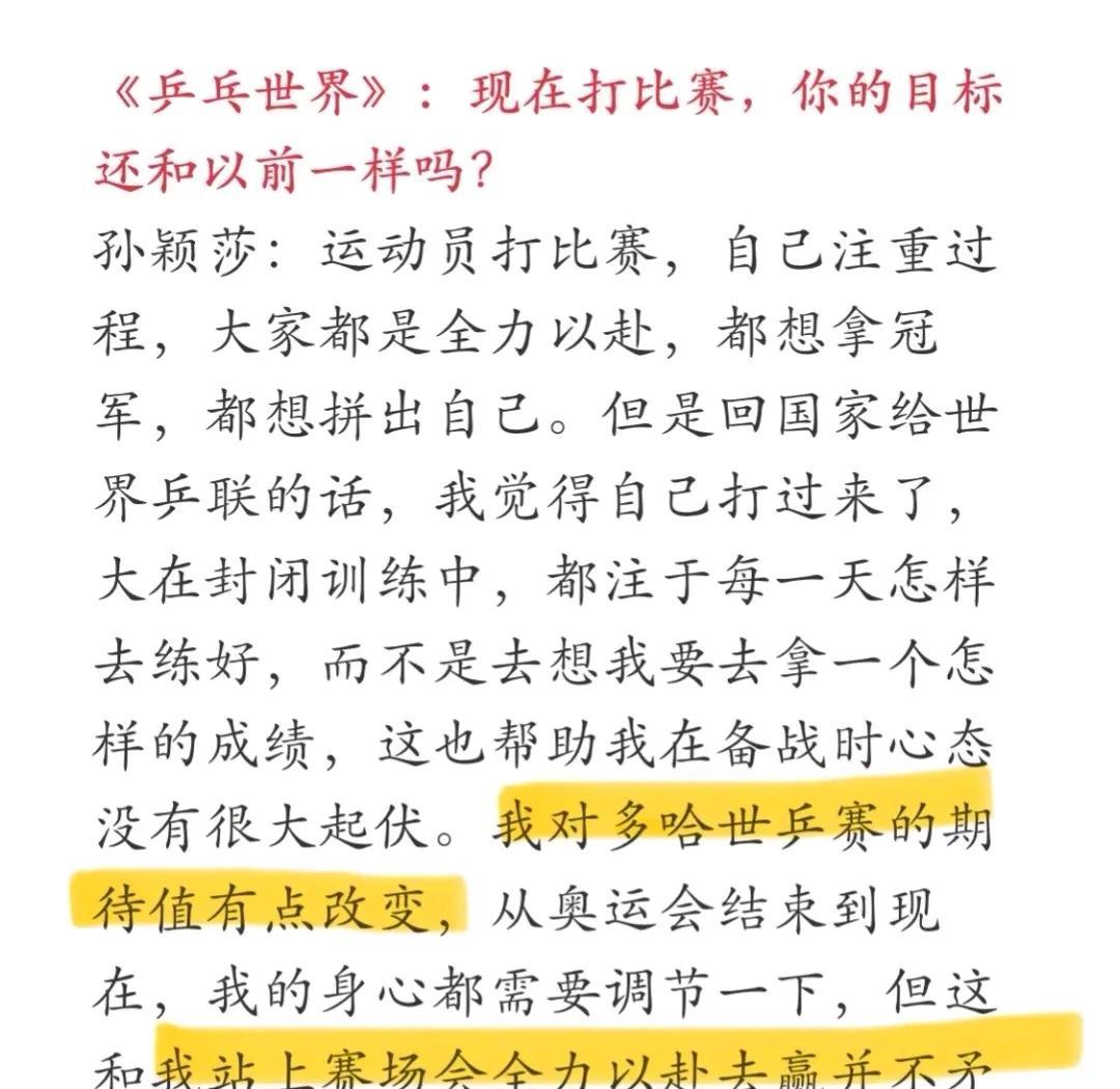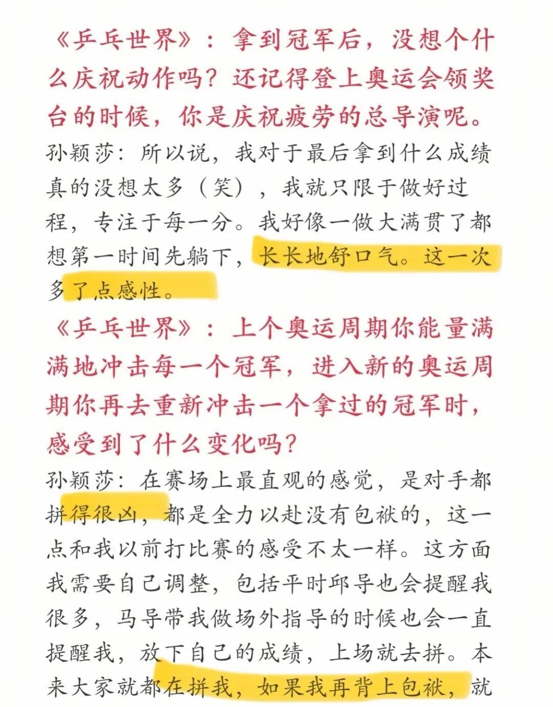 看孙颖莎的乒乓世界杂志采访,听她的讲述,总是鲜少苦痛,总是非常阳光向上!从来不说