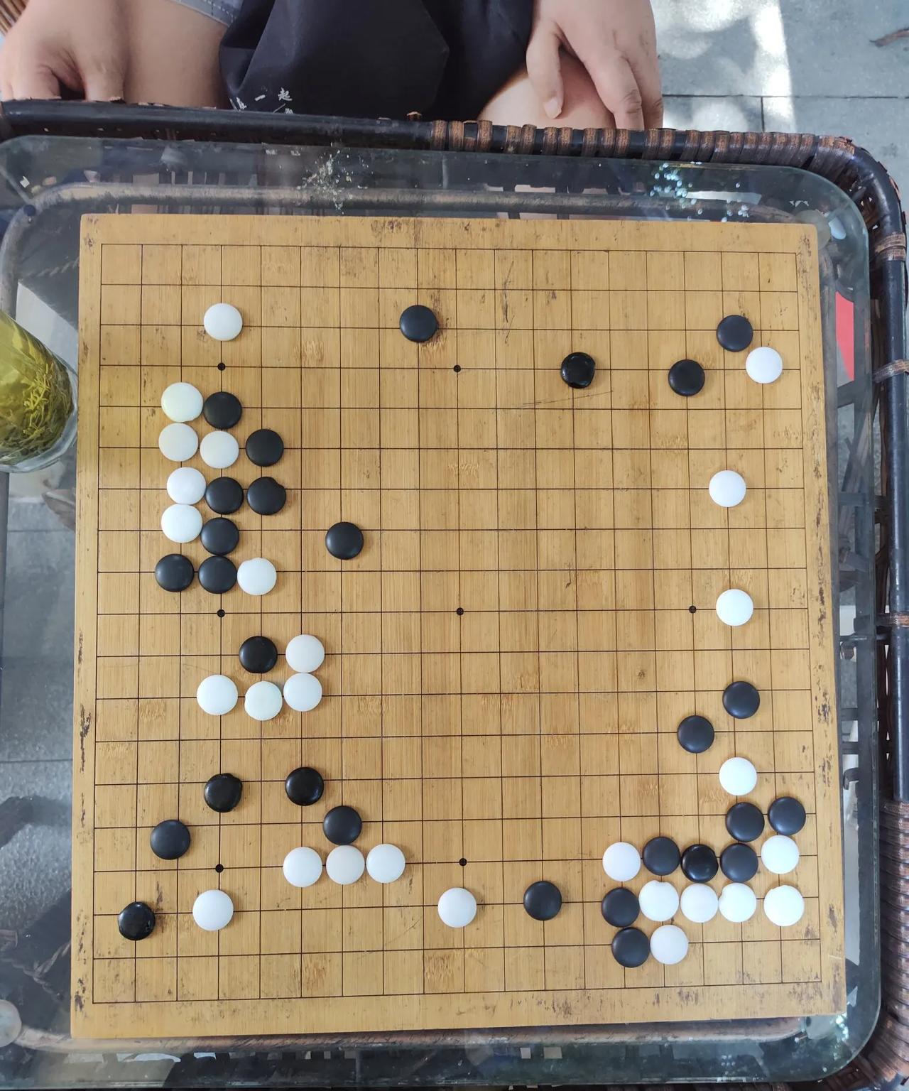 线下对局,欢迎点评。 如图局面。白先。白先棋是否优先处理左侧中央白棋?另外白棋右下这一颗白子是否需要逃跑,将黑棋分成两块?目前双方形势如何?白空是否已经领先?#黑白棋局#