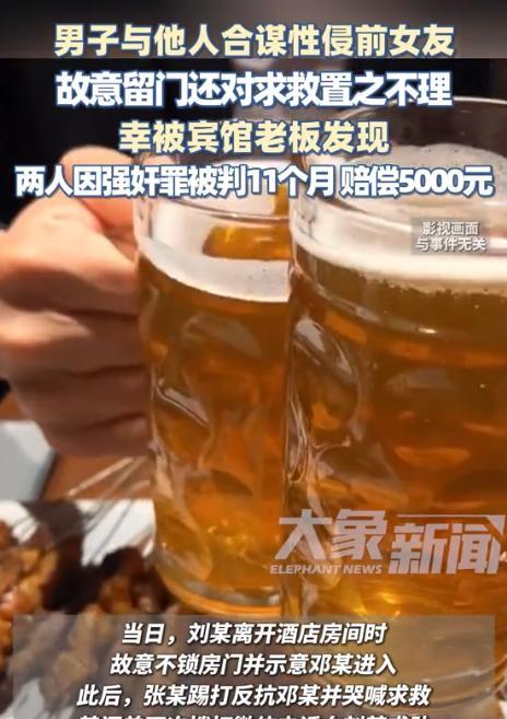 “太渣了!”广州,男子凌晨邀请前女友和自己哥们儿一起吃饭喝酒,酒后,开房与前女友发生关系后离开,万万没想到,离开时故意不锁门让自己的哥们儿进入房间、与自己的前女友发生关系。期间,男子的前女友不断反抗,并还曾两次向男子求救,直到惊动宾馆的老板,才幸免于难! 据大象新闻8月4日报道,本以为只是一次普通的聚餐,结果却演变成一场可怕的阴谋。 2024年5月17日凌晨一点多,本该是大家安稳入睡的时候,张女士却突然被一通电话吵醒。 来电的是她的前男友刘某。 电话那头,刘某语气特别热情,说他正在附近和朋友邓某吃烧烤,想叫张女士一起来聊聊,说有点重要的事。 两人虽然已经分手了,但也算熟人,张女士犹豫了一下,还是决定过去见一面。 到烧烤摊的时候,刘某和邓某已经点好酒菜,三人边吃边聊。 期间刘某和邓某一直劝酒,张女士一开始还有些防备,但抵不住两人热情,慢慢就喝多了,脑子开始发晕。 吃完已经深夜,刘某说张女士喝醉了,不安全,让她别回家了,干脆去附近休息一下。 他说得挺自然,张女士也没多想,就同意了。 邓某去宾馆开了个房间,三人一起过去。 到了宾馆之后,张女士和刘某先进了房间,邓某在门外等。 没过多久,刘某就和张女士发生了关系。 可接下来发生的事,彻底暴露了刘某的真面目。 刘某借口要离开,想拿走房卡,但张女士没答应。 结果他悄悄不锁门,还给站在门外的邓某递了个眼神。 邓某立刻明白意思,直接进了房间。 张女士这才警觉起来,赶紧叫他出去。 但邓某根本不听,试图对她实施侵犯。 张女士拼命挣扎、大声哭喊,试图自救。 她第一时间想到的是打电话给刘某求助。 电话接通了,但刘某根本没进来,冷眼旁观。 第二次再打时,刘某干脆拒接电话。 宾馆老板被房间里的声音惊动了,过来查看情况。 刘某才装模作样地走进房间,把事情糊弄过去,还假装什么都没发生似的,带着张女士和邓某离开了宾馆。 事情过后,张女士非常崩溃。 但她没有立刻报警,而是沉默了几天,最终还是鼓起勇气,把事情告诉了警方。 警方展开调查后,发现刘某和邓某其实早有预谋。 他们事先就计划好,刘某负责把张女士约出来、灌醉,然后他先“下手”,再让邓某进去“接力”。 刘某的行为不仅卑劣,更是犯罪,警方掌握了足够证据后,把两人抓了。 法院审理认为,刘某属于协助他人强奸,而邓某虽未得逞,但已构成强奸未遂。 最终两人被判了11个月有期徒刑。 值得一提的是,刘某家人代为赔偿了张女士3万元,张女士出于无奈也表示谅解。 但事情并没有结束。 这起事件对张女士造成了严重心理伤害,她被诊断为焦虑、抑郁,生活和工作都受到了影响。 于是她再次提起民事诉讼,要求刘某和邓某赔偿她误工费、医药费、精神损失费等共计5万元。 法院考虑到之前的赔偿属于刑事和解,而不是民事赔偿,最终又判两人补偿张女士5000元精神损失费。 这起案件曝光后,网友们愤怒不已:“这俩人简直不是人,连前女友都坑!”“判11个月?太轻了吧,这种人就该严惩!”“心疼受害者,希望她早点走出阴影。” 信源:大象新闻