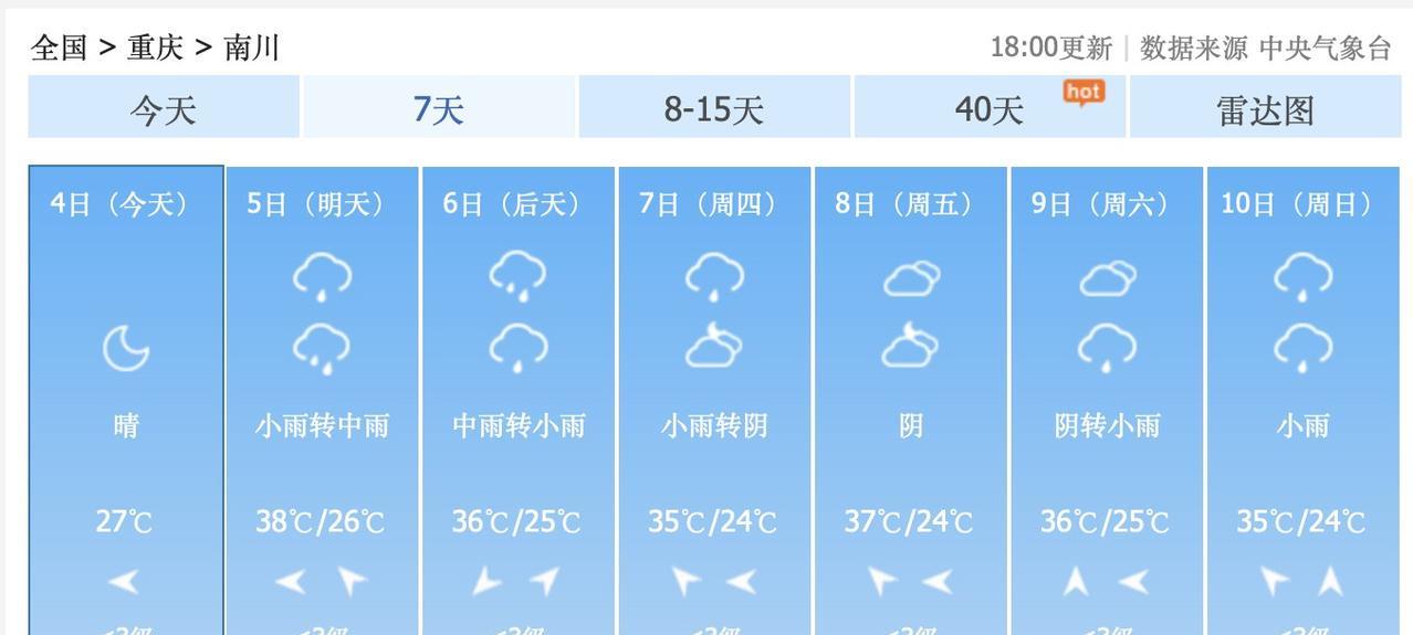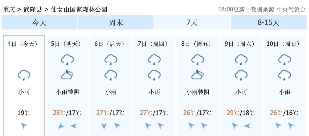 8月5日到6日,重庆南川,小雨,中雨……8月5日到10日,仙女山,金佛山,经常小