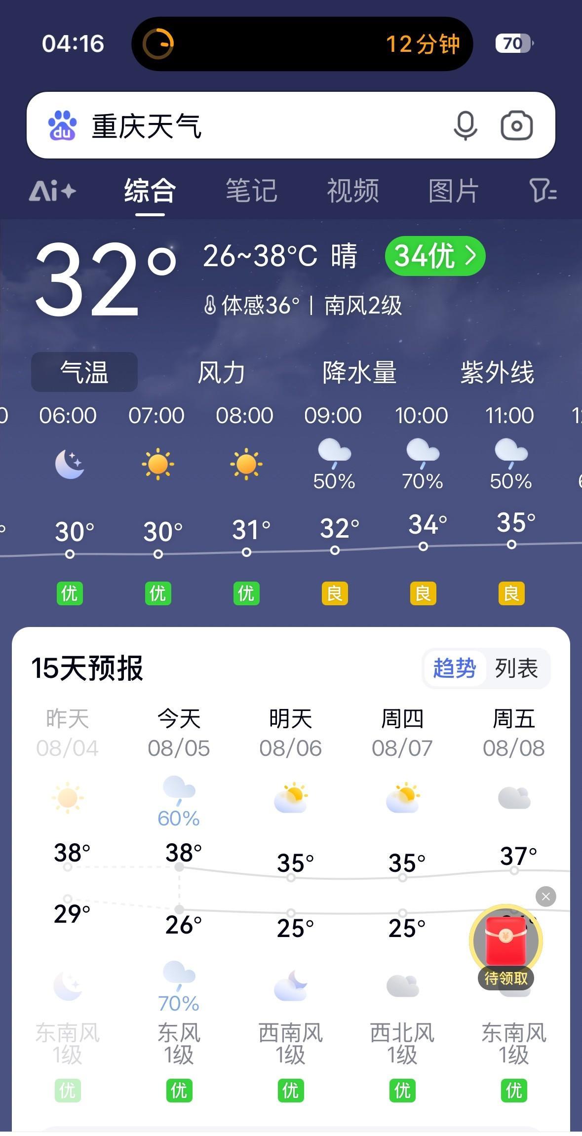 8月5日清晨6点,重庆主城区可能会出现史诗级的朝霞日出,大家赶紧起床去缙云山、天