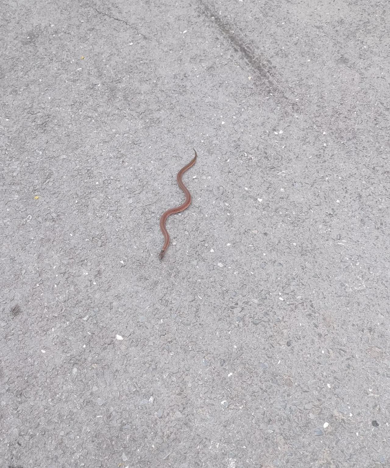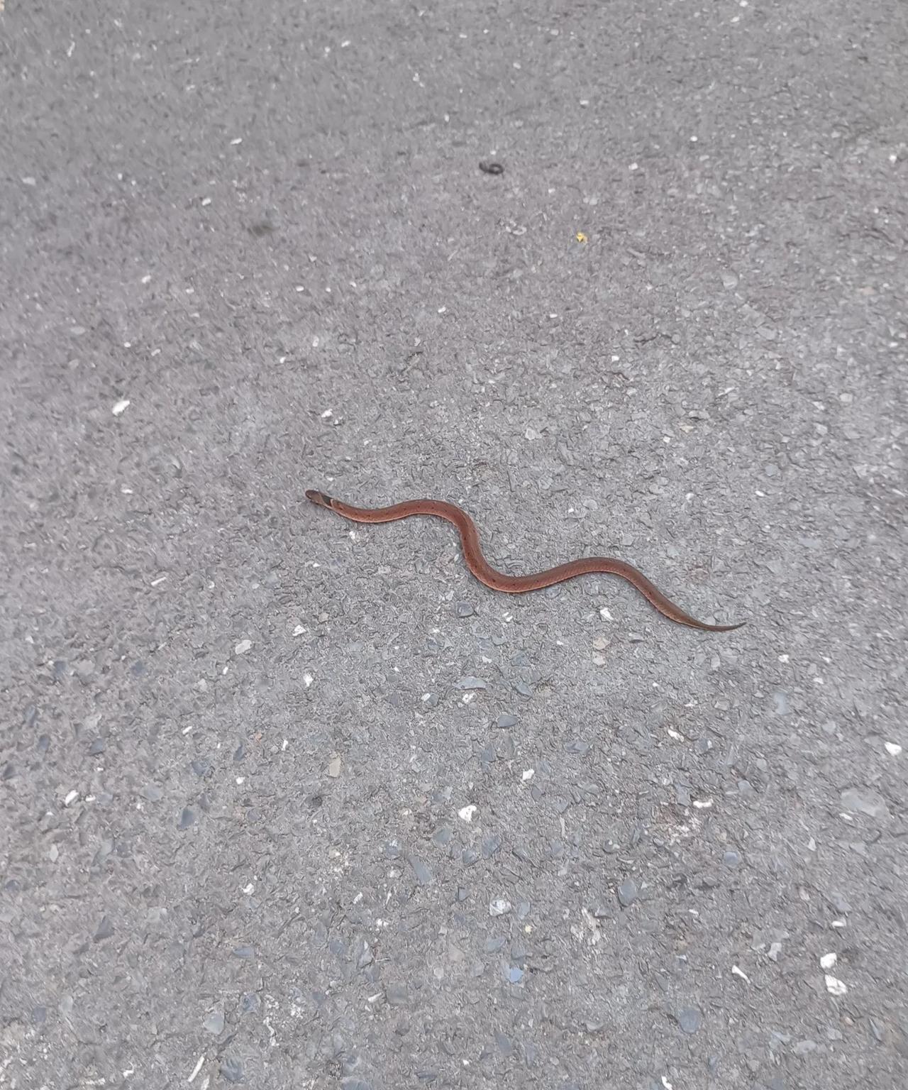 清晨起来跑步, 差点踩到一条蛇, 吓我一大跳。 这蛇是褐色的, 粗粗短短的小蛇。
