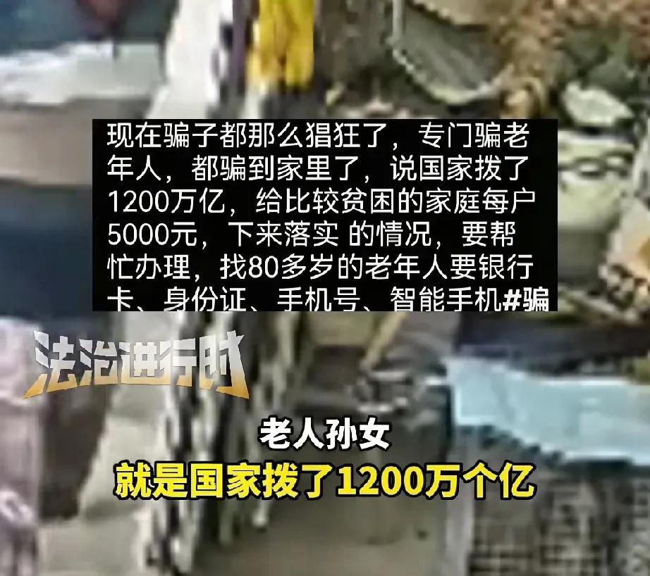 警惕骗局!江苏宿迁,一陌生男西装革履、提着公文包,去农村给老人“发钱”。他自称是国家派来的,贫困户可拿5000元,只需要提供一些信息和证件即可。如果老人相信并照做,最终将会被骗得血本无归。 皮鞋、短发、公文包、衬衣,这身行头乍一看,还真有点像工作人员。见到老人后,陌生男亲切问好,还用左手敬了一个礼,然后便是笑盈盈地握手。 农村七八十岁老人原本就单纯善良,这一番操作下来,他们便信以为真,认为是国家派人下来体察民情。 担心男子被太阳晒着,老人主动邀请他进屋去坐,骗子的具体行骗开始了: 他称国家拨款1200万亿,分给全国200万个贫困家庭,每户5000元,帮助穷人改善生活。 从这里就可以看出,骗子的数学不咋好。1200万亿是什么概念?去年我国GDP总量约为135万亿,这相当于八九年GDP总和了。 另外,真把1200万亿分给200万户,每户可分6亿元,而不是区区的5000块。 要拿到这笔钱,老人需要做的也很简单,只需要提供银行卡、身份证、手机号和智能手机即可。 5000块对于农村老人而言不是一笔小数目,有男子的形象在前,又有国家名义“发钱”在后,老人们是很愿意相信和配合的。 有网友道出了其中的猫腻,陌生男要这些东西,是为了用老人们的身份信息,去网络平台借黑网贷。 虽然老人们年事已高,但很多黑网贷平台几乎不看征信和资质,即使放款额度少,多撸几个平台,也能弄出几千上万,而且一般几分钟就能到到账。 然后他们将钱转出,拍拍屁股走人,让老人们在家等消息,最终几个月后还钱,网贷平台就会找上老人,所有证件都是你的,那时便百口莫辩! 幸亏这位老人的儿子就在附近,发现家里不对劲后,赶回来制止,这才阻止了父亲被骗,之后又通过家门口的监控摄像,还原了陌生男的所有行骗过程。 陌生男的行为是典型的诈骗罪,根据《刑法》第266条,会被判处三年以下有期徒刑、拘役或者管制,并处或单处罚金。若他经常这样干,并且屡屡得手,金额累积到一定程度后,刑罚也会跟着升级,最高可判到无期。 这个骗局之所以“高明”,是因为他精心挑选了对象、找了一个很合适的借口、并且将自己打扮得有模有样! 家里有老人的,一定要警惕这种新型骗术。天上不会掉馅饼,国家扶贫也只会通过正规部门和正规手续,绝不会假手于一个来路不明的陌生人…… 【关注@小讼言案 ,为您分享更多精彩】 (来源:法治进行时)