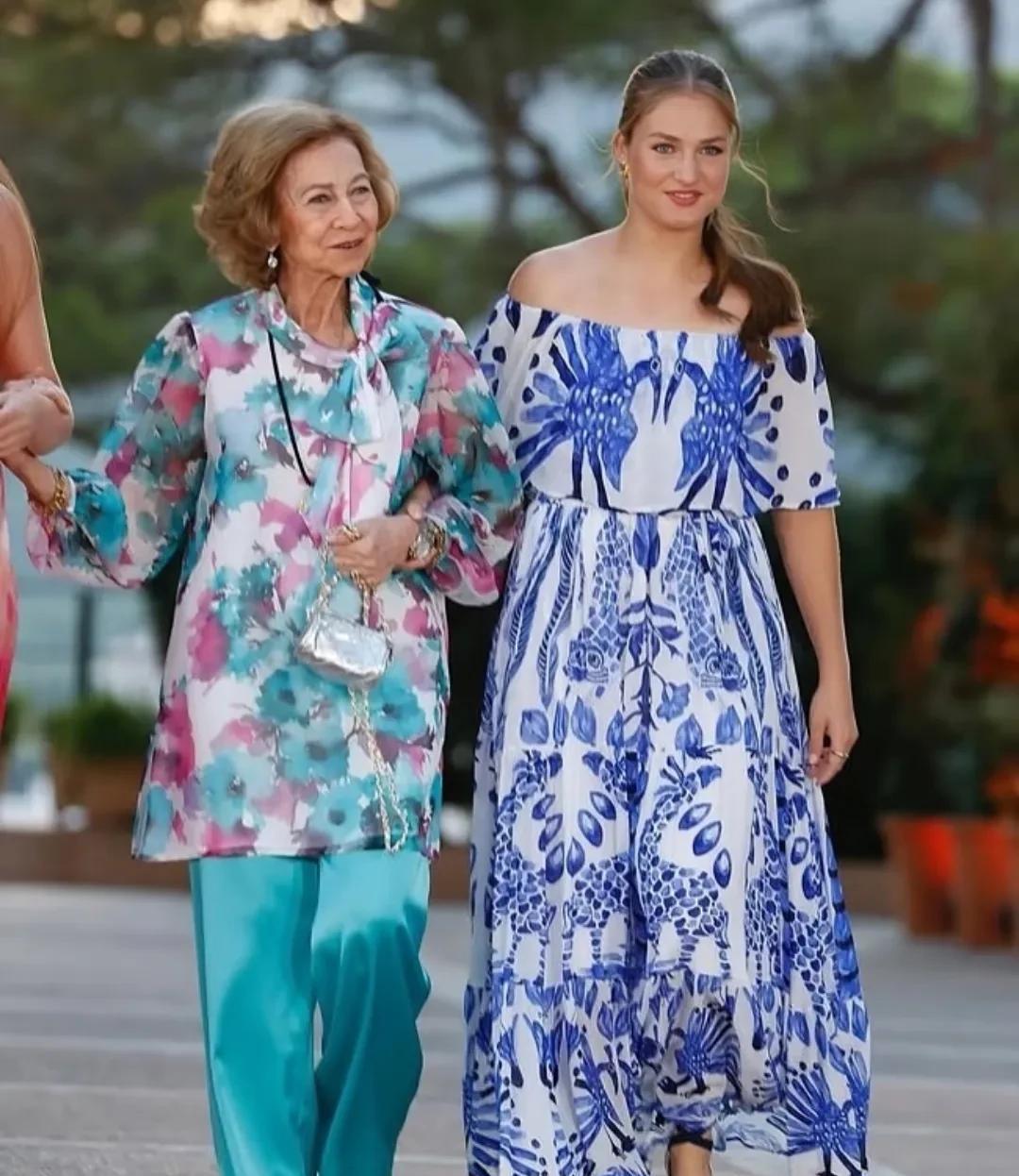 莱昂诺尔公主穿了妈妈的裙子 诺拉和菲菲在帕尔马的新照~诺拉身上的裙子来自莱后 母女俩也是共享衣橱了。诺拉的裙子看起来还好,就是索菲亚公主这个裙子看起来一言难尽........