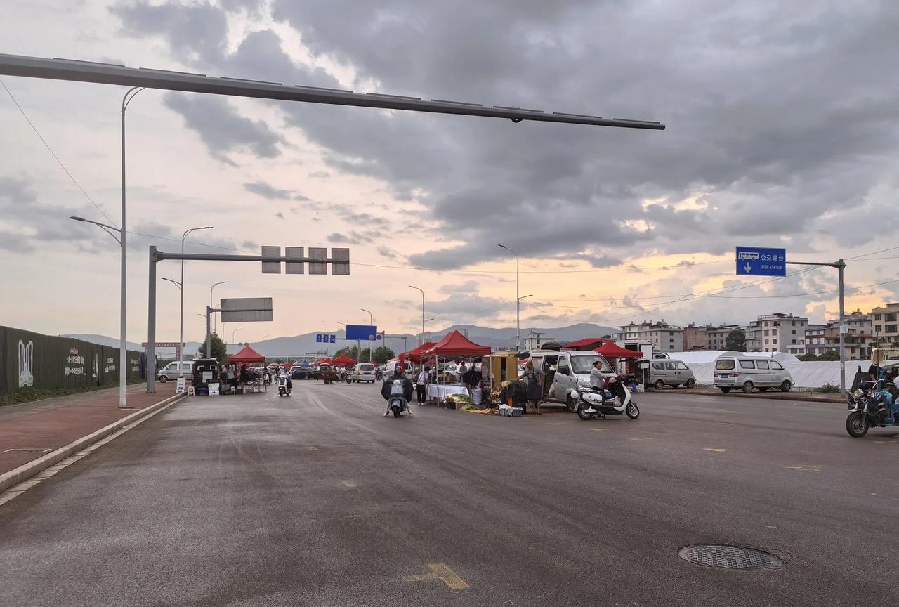 为了激活市场、鼓励消费并方便市民,玉溪高铁站旁边有一个规模颇大的黄官夜市。每天跑步路过就能看到小摊小贩在为开张作准备。夜市长约300米,摊位估计将近一千个,这是一个每天傍晚6点封闭交通、占用公路而形成的夜市。场内经营着各种各样的生鲜熟食、瓜果蔬菜、冷饮小吃、生活用品等,可谓一应俱全。这个夜市很有烟火气,晚上七到九点为夜市高峰,人流最大,确实为众小贩提供了一个合法合规的经营场地,让他们能挣一点辛苦钱。