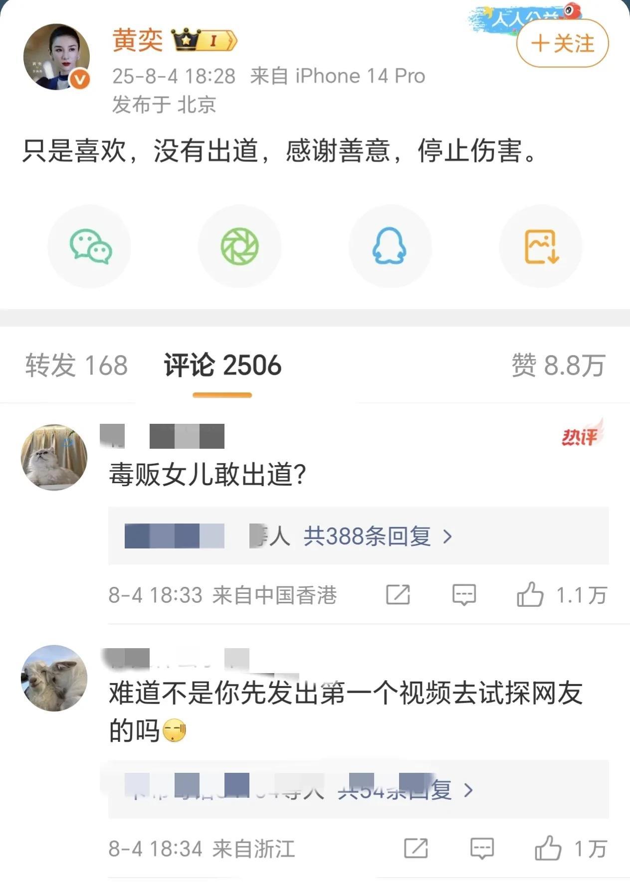 黄奕急了,她肯定也想不到,就发了一个女儿跳舞的视频会引来网友的抵制,赶紧解释女儿没有出道,只是喜欢跳舞而已,可是面对黄奕的解释,网友都不接受,黄奕这次真的是亏了。 网友抵制黄奕女儿出道,并不是因为她不好看,而是因为她的爸爸因为贩du去踩缝纫机了,这点踩到了大家的底线。 而黄奕发女儿跳舞的视频,被大家认为是在为女儿铺路,毕竟星二代要进入娱乐圈太容易了,就像小沈阳女儿一样,在父母的托举下继续在娱乐圈赚钱。 黄奕本来也不赞同女儿进娱乐圈,而且之前她多次带女儿参加活动,大家也没说啥,所以黄奕自己应该也想不到这次网友反应这么大。 黄奕曾经的恋爱脑真的影响太大了,好不容易重新复出,才积累了一些口碑,还是要好好珍惜。