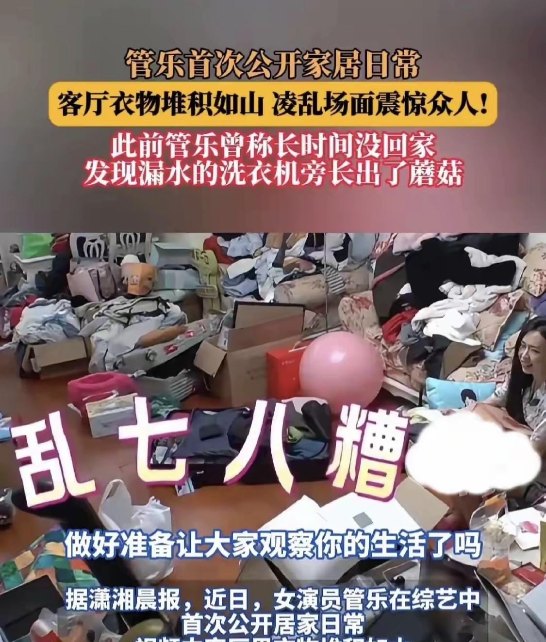 管乐家乱成这样,你敢信? 最近她在综艺里曝光了自己的家居日常,那场面简直了!客厅里衣服堆得跟小山似的,乱七八糟的,真不是我夸张,感觉下脚的地方都快没了。 之前她还说过,长时间没回家,洗衣机漏水,旁边都长出蘑菇了,这生活技能也是没谁了。不过她自己倒是挺乐呵,还回应说真的收拾了。咱就是说,这收拾前后也没差多少啊,也太接地气了吧,感觉和咱普通人也没啥两样,就是这乱的程度,我是真没想到。你家乱的时候能乱到啥程度?来评论区唠唠呗。 #头号创作者激励计划##综艺# #我家那闺女# #管乐# #管乐的家乱的让人震撼# #管乐真收拾了# #怪不得张小婉不愿意去管乐家住# #管乐谈分手原因#
