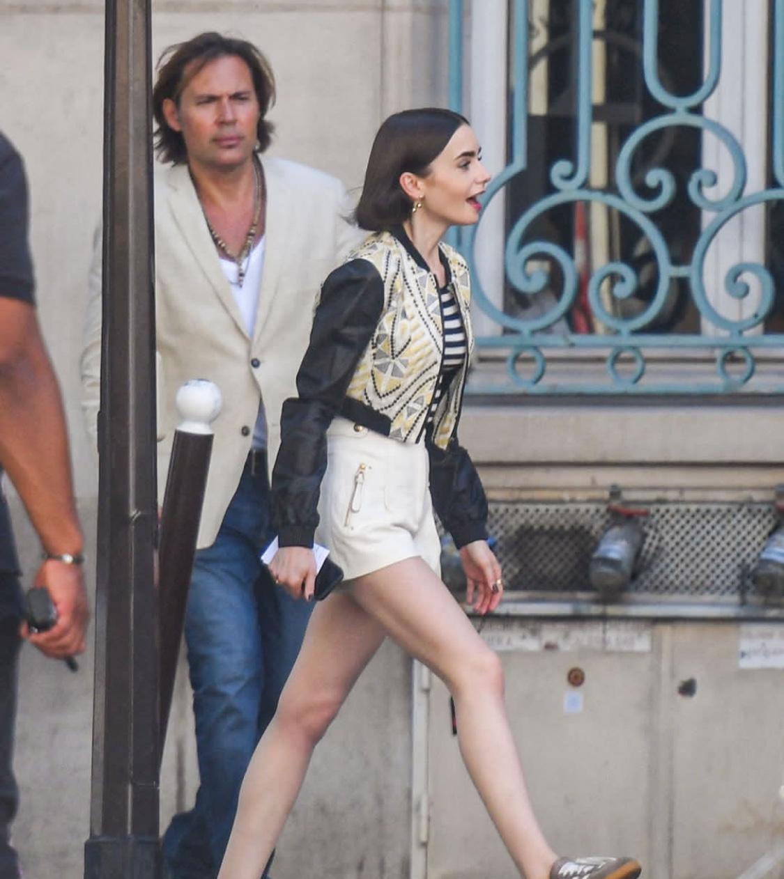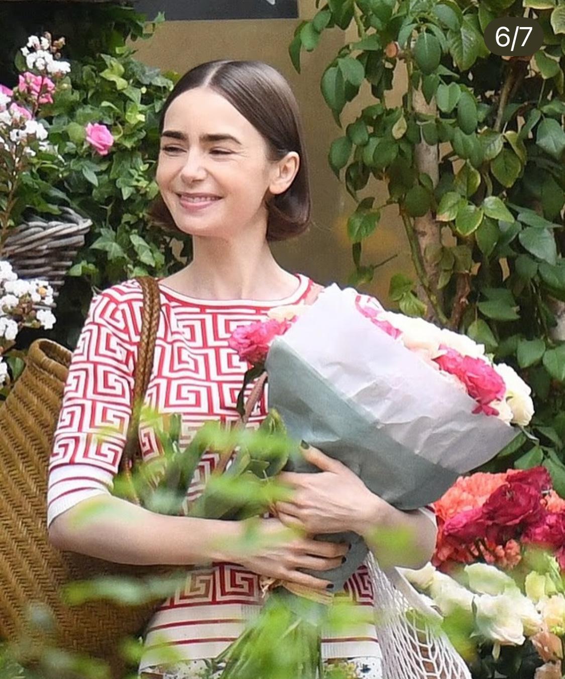 EmilyinParis第五季正拍摄中,莉莉·柯林斯颜值依旧能打。一头利落短