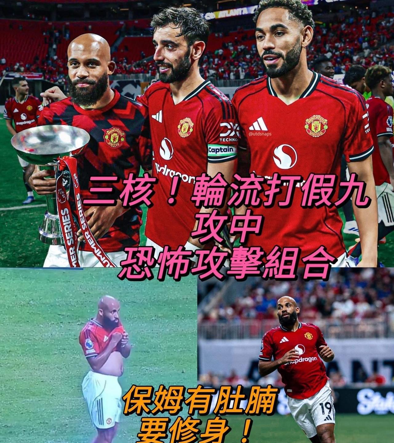 曼联2比2战平埃弗顿。 一场英超强度级别的季前赛,曼联还需要一名中场,最适合B费